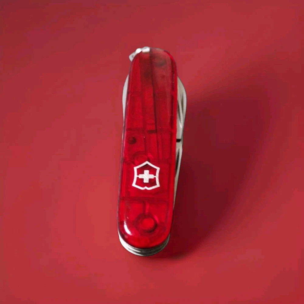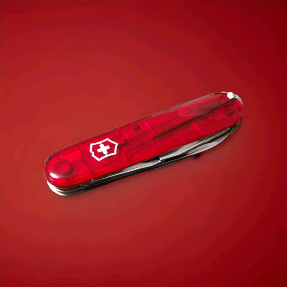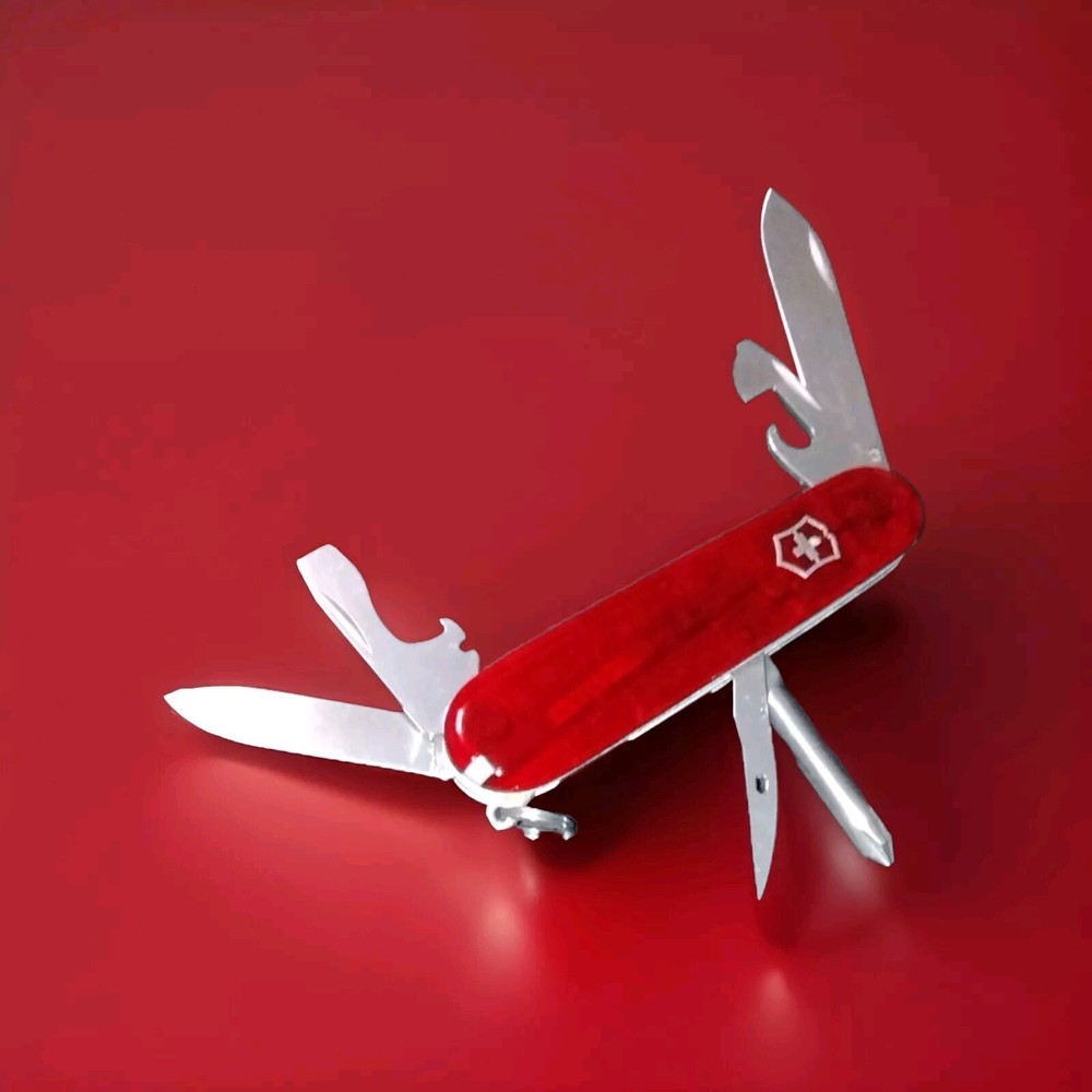 Victorinox Swiss Army 53111 Tinker Translucent Ruby. A mainstay in our Swiss Army Knife collection, the 3 1/2" Tinker includes all of the implements needed for work or play. With both a small and large screwdriver and a Phillips screwdriver this tool will make quick work of many projects. The stainless steel blades carry a lifetime warranty against defects in materials and workmanship and are durable enough to last forever. Translucent Ruby Features/Specifications: Large Blade Small Blade Can Opener with Small Screwdriver Bottle Opener with Large Screwdriver and Wire Stripper Reamer with Sewing Eye Phillips Screwdriver Toothpick Tweezers Length (Closed): 3.5 inches / 91 mm Lifetime Warranty Made in Switzerland