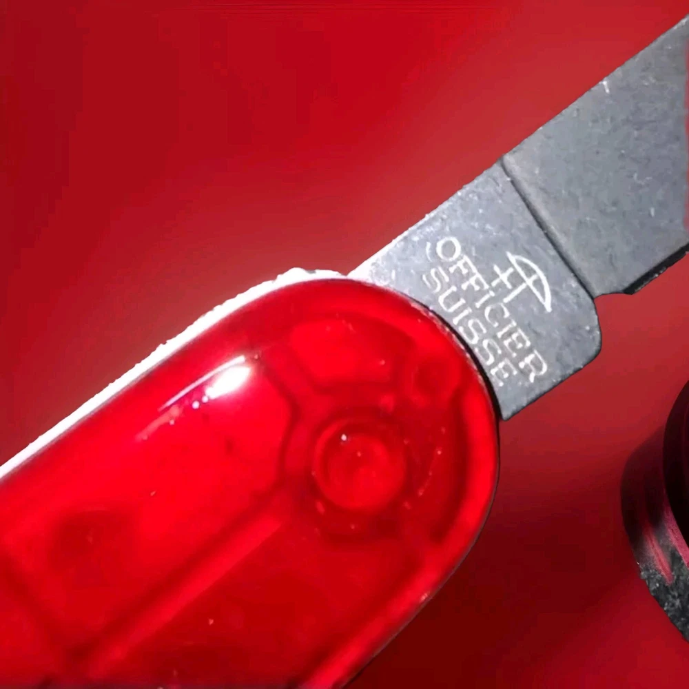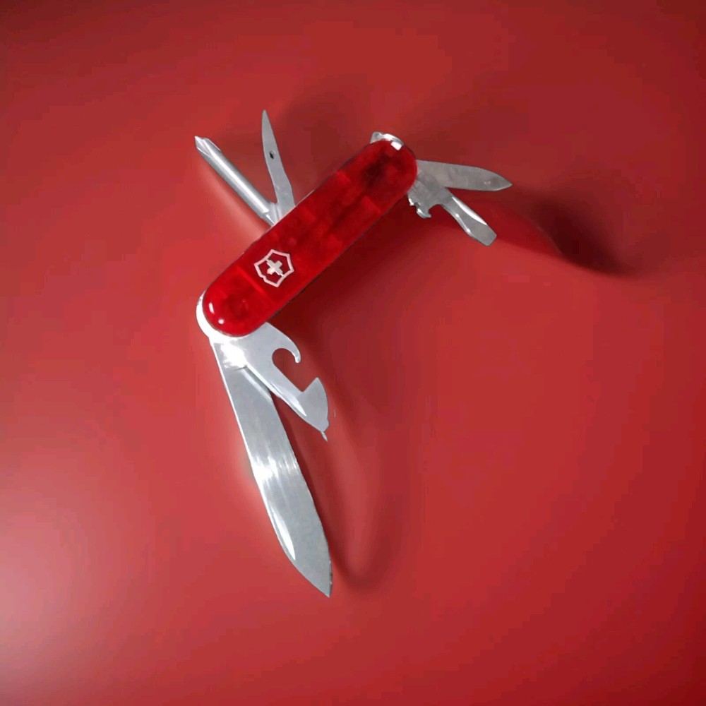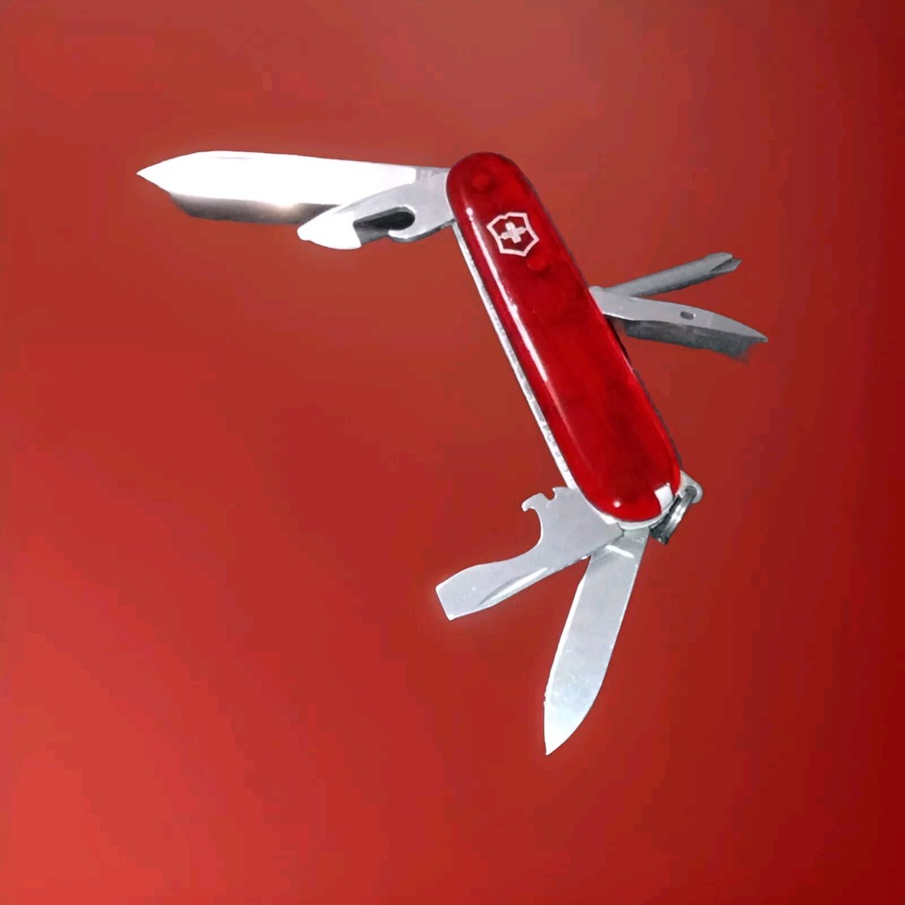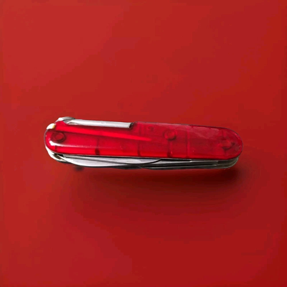 Victorinox Swiss Army 53111 Tinker Translucent Ruby. A mainstay in our Swiss Army Knife collection, the 3 1/2" Tinker includes all of the implements needed for work or play. With both a small and large screwdriver and a Phillips screwdriver this tool will make quick work of many projects. The stainless steel blades carry a lifetime warranty against defects in materials and workmanship and are durable enough to last forever. Translucent Ruby Features/Specifications: Large Blade Small Blade Can Opener with Small Screwdriver Bottle Opener with Large Screwdriver and Wire Stripper Reamer with Sewing Eye Phillips Screwdriver Toothpick Tweezers Length (Closed): 3.5 inches / 91 mm Lifetime Warranty Made in Switzerland
