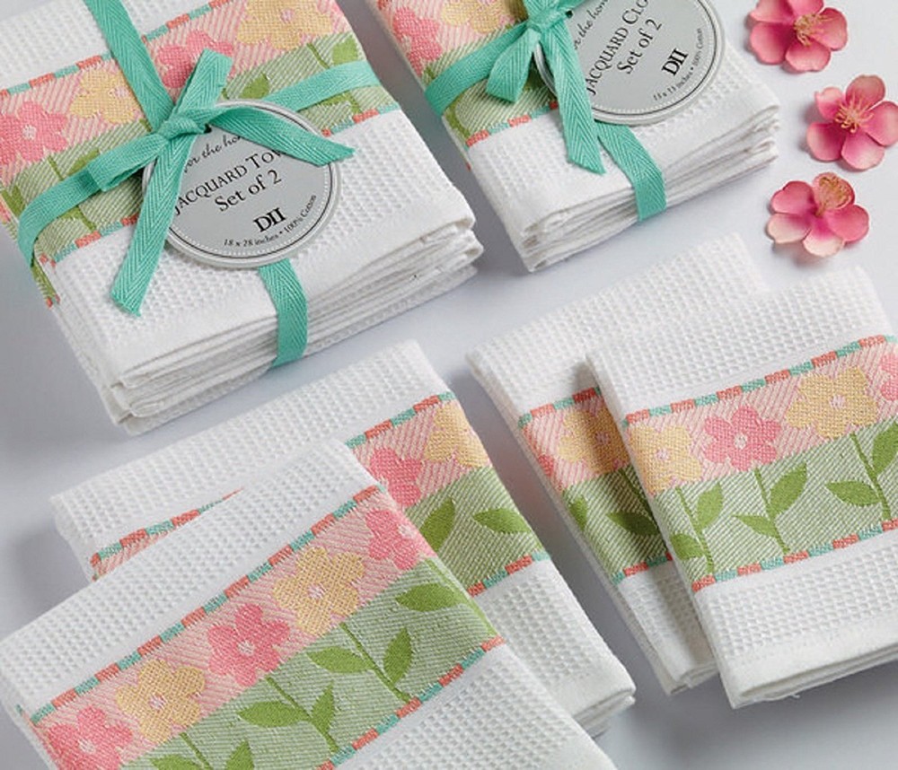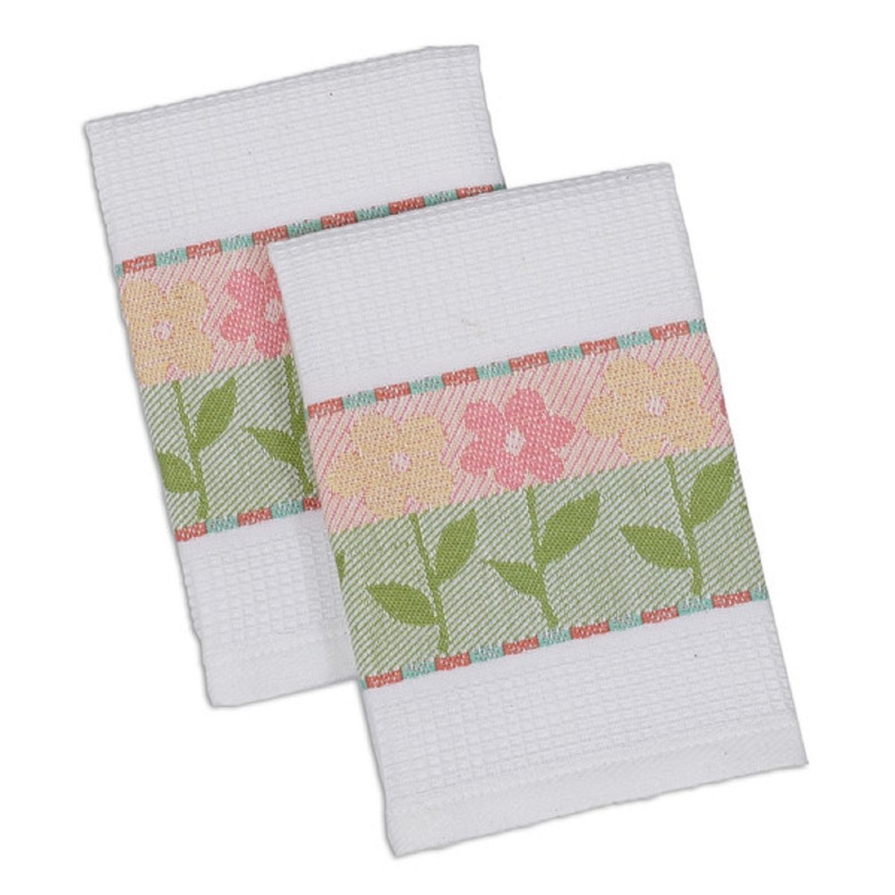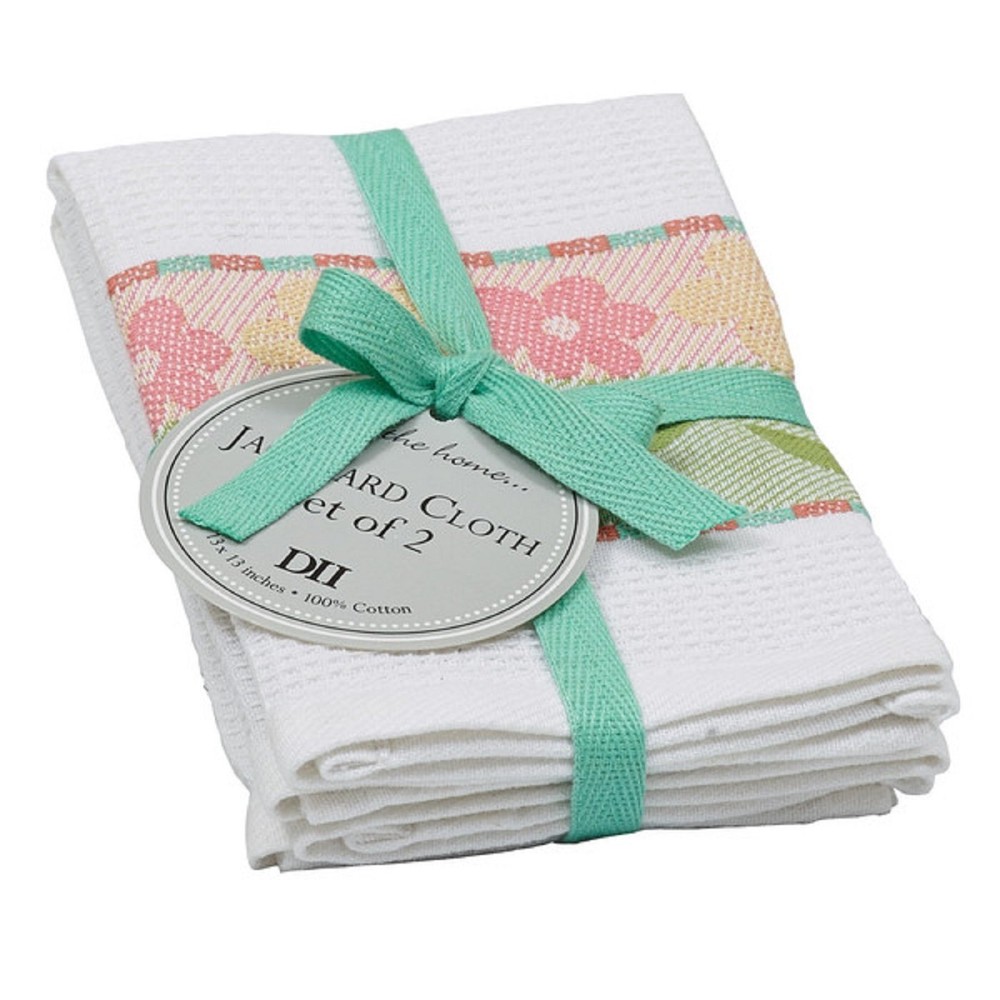 DII Design Imports Flower Stripe Jacquard Dishcloth Set of 2 Machine Wash Tumble Dry Tied Together with Ribbon Hang Tag 13.25 X 13.25" 100% Cotton