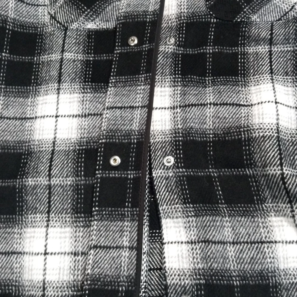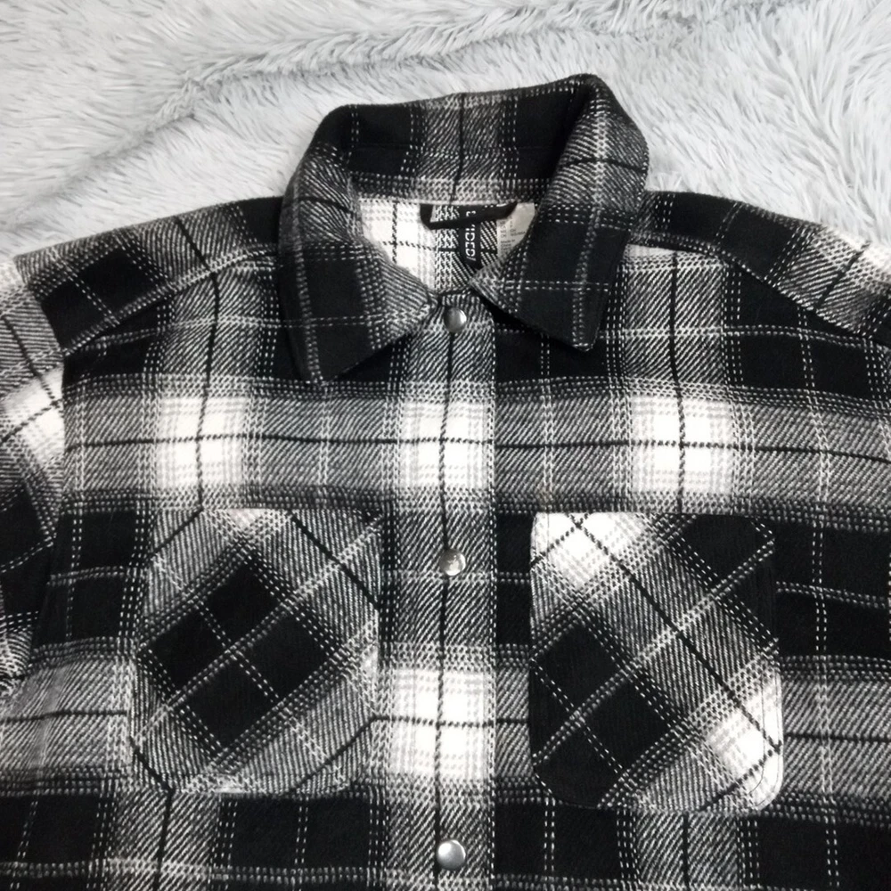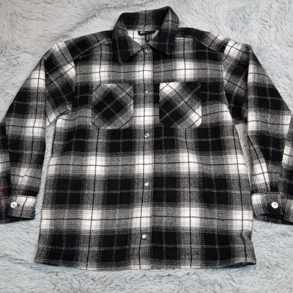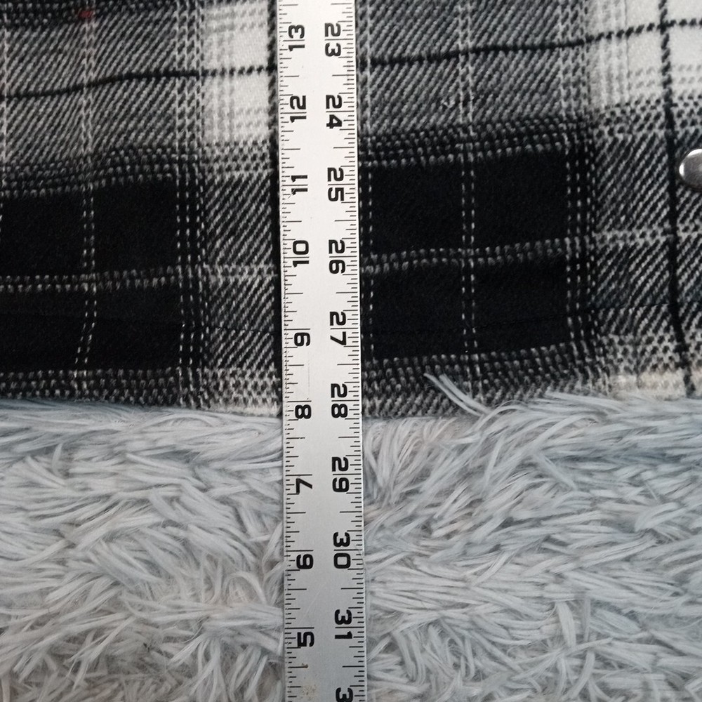 Divided Jacket Womens S Black Plaid Shacket Cozy Comfort Snaps Grunge Punk Chore Good Condition. Spots. Please review photos for measurements and condition. Item will be shipped within one business day. We ship items daily Monday-Friday. * Product color may vary slightly due to photographic lighting or your monitor settings.