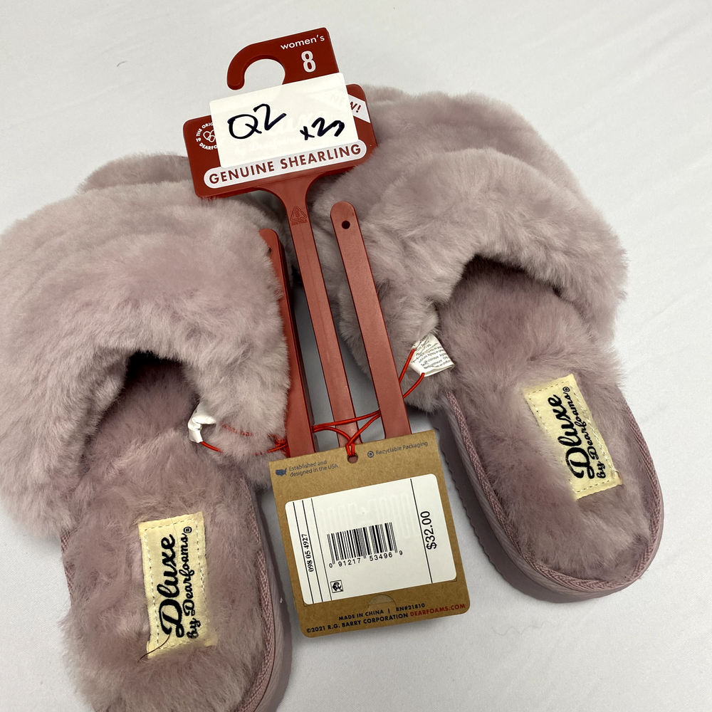 Dluxe by Dearfoams Ultra Soft Comfort Teddy Pile Open Toe Scuff Slippers Size 8 Stored in a smoke free environment Q2