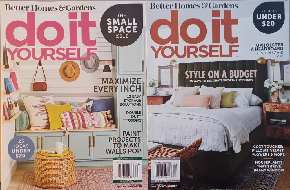Do It Yourself Better Homes & Garden Magazine Lot Of 2. To see table of contents please see pictures. Shipped with media mail. **These Magazines are new as in never owned before. They are magazines I recieve that didn't sell off the retail shelves. They are in great condition. Not perfect. Some are perfect. I don't list these as collector items. If you would like a picture of the copy you recieve I can send pictures upon request. I ship all of my magazines with cardboard to ensure no damage from post office. When you open the envelope, the side with the address has the cardboard and safe to cut open on that side. Please take a look at seller's other magazine's 😊