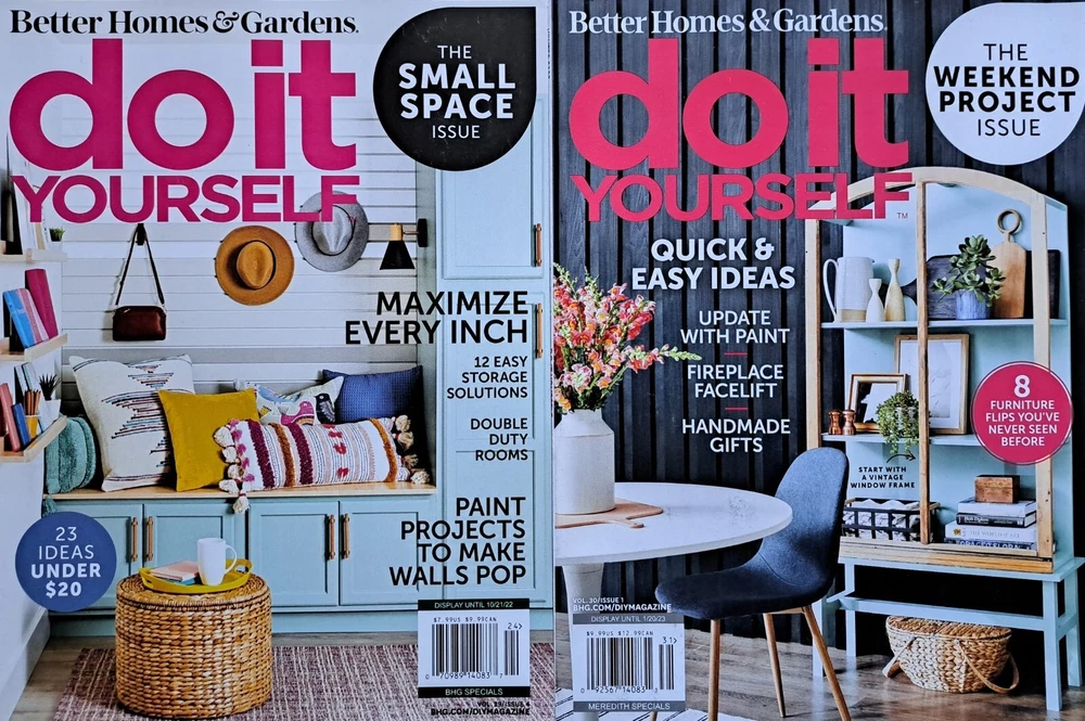 Do It Yourself: Better Homes & Gardens Magazine Lot Of 2. To see table of contents please see pictures. Shipped with media mail. **These Magazines are new as in never owned before. They are magazines I recieve that didn't sell off the retail shelves. They are in great condition. Not perfect. Some are perfect. I don't list these as collector items. If you would like a picture of the copy you recieve I can send pictures upon request. I ship all of my magazines with cardboard to ensure no damage from post office. When you open the envelope, the side with the address has the cardboard and safe to cut open on that side. Please take a look at seller's other magazine's 😊