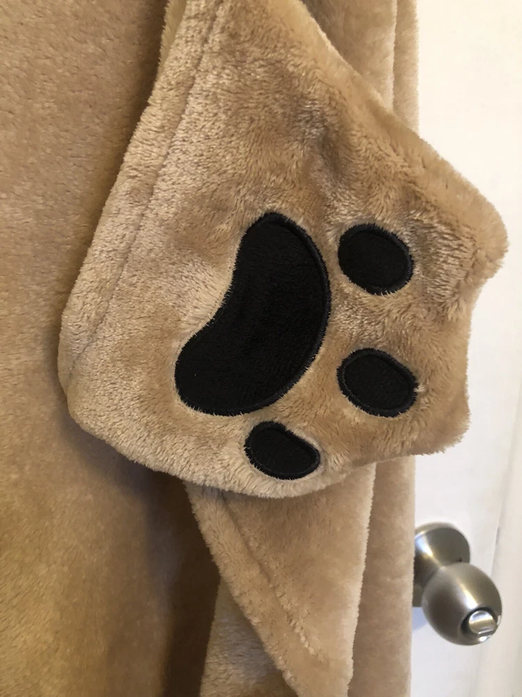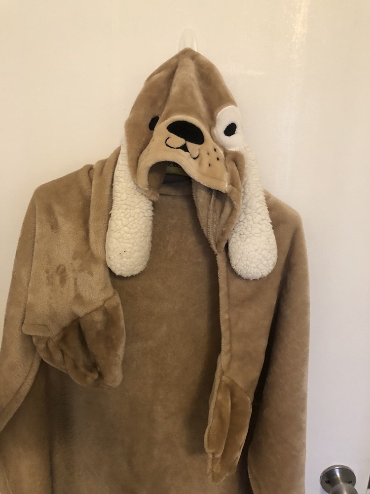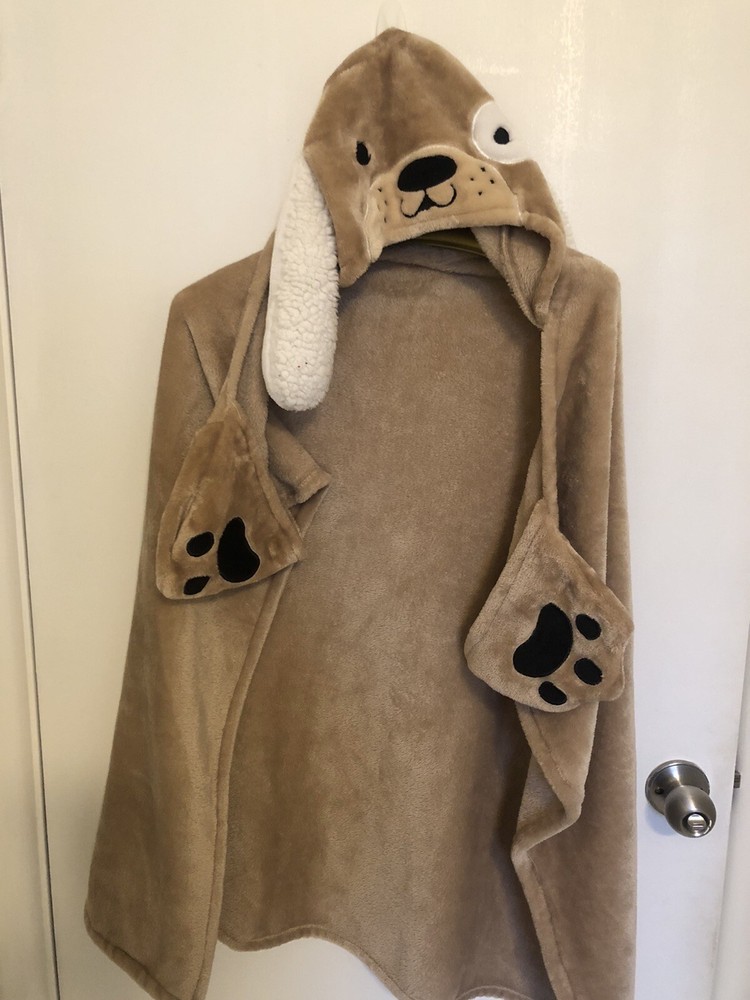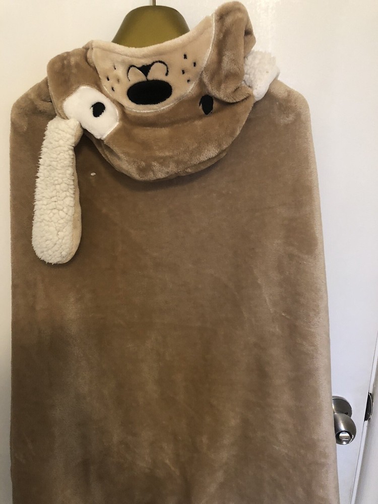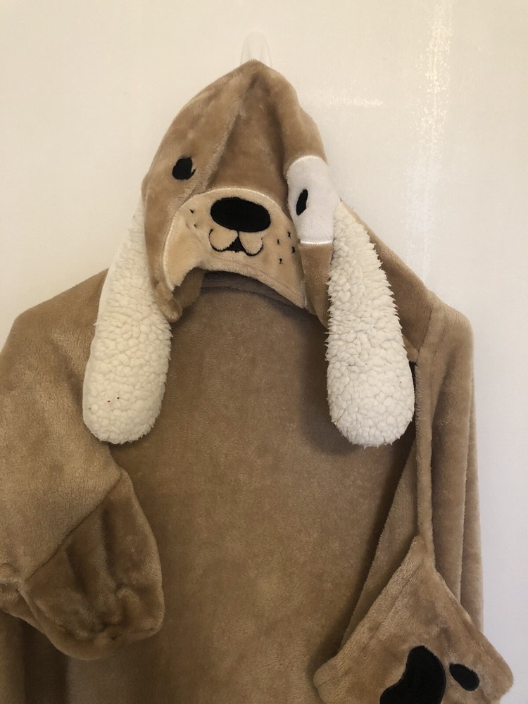 Get ready to snuggle up in style with this Soft & Cozy Doggie Wrap Around Hoodie Blanket. With a playful spotted pattern on the back and a warm cotton blend material, this blanket is perfect for curling up in bed or on the couch. The easy care instructions make it a hassle-free addition to any bedroom, and the brown color will match any décor. Measuring at body size, this blanket is perfect for wrapping around yourself on those chilly nights.