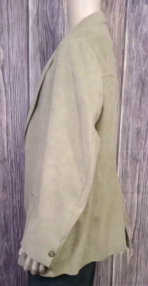 This Doncaster Original Men's Faux-Suede Jacket Blazer in Dark Tan Beige is a timeless piece that will elevate any wardrobe. The blazer features a notch lapel collar, button closure, and inside pockets for added convenience. The pleated accents and logo detailing provide a touch of sophistication, making it perfect for both formal and casual occasions. Constructed from high-quality faux suede and lined with polyester, this blazer is wind-resistant and suitable for all seasons. It comes in size 50L. It is recommended to dry clean only. This blazer is perfect for those who want to add a touch of class to their wardrobe.