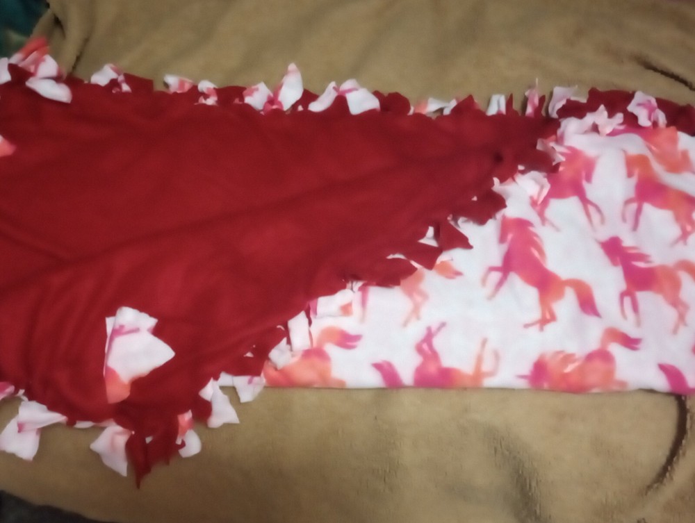 Double-sided blanket red and unicorn on the either side. Great for cuddling on the couch, taking a ride out you can take this blanket even for a sleepover even a picnic! These are great blankets for any occasion.