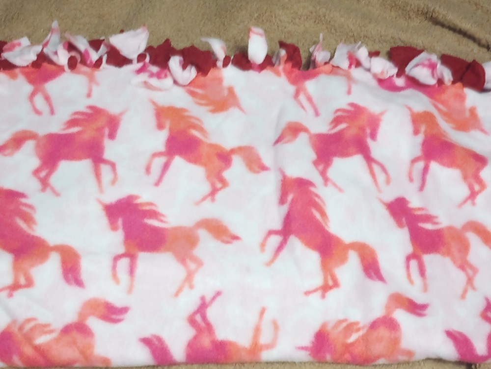 Double-sided blanket red and unicorn on the either side. Great for cuddling on the couch, taking a ride out you can take this blanket even for a sleepover even a picnic! These are great blankets for a...