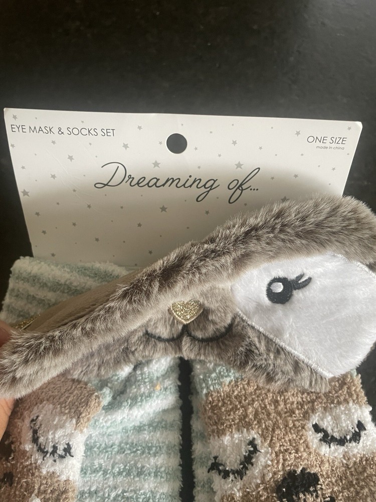 Elevate your cozy collection with this Dream Of Eye Mask & Sock Set. The set includes a pair of anti-skid socks and a cozy eye mask, both featuring a charming brown and mint color combination. Designed for women and girls, these socks and mask are perfect for keeping your feet and eyes warm and comfortable during chilly weather. Crafted with quality materials, the socks and mask are durable and long-lasting. The one size fits all design ensures a comfortable and snug fit. Perfect for gifting or adding to your own collection, this set is a must-have for any cozy lover.