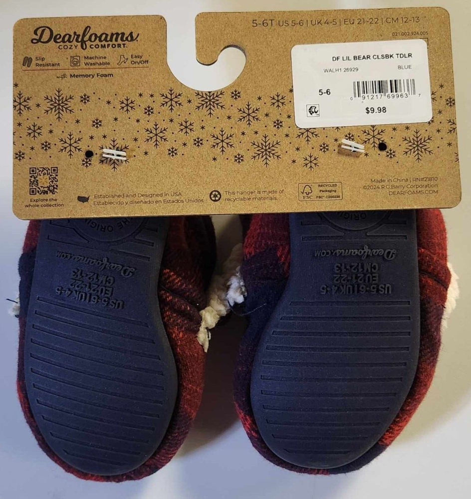 Dreamfoams Cozy Comfort Toddler Size 5/6 Lil Bear Plaid Slippers...
