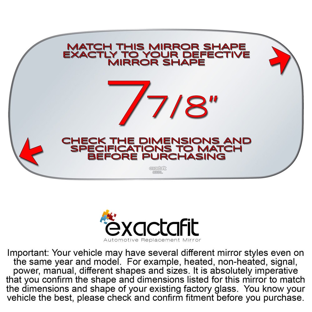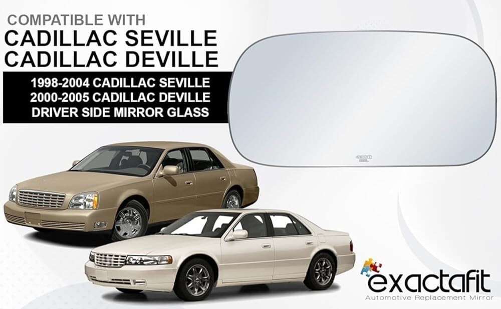 RUGGEDTUFF EBAY AD exactafit side mirror glass is a direct replacement for your broken mirror and provides an alternative to replacing the entire mirror. Our repair kit is ideal when just your mirror glass is broken and your backing plate is intact. Safety-smooth seamed edges for safe handling. First-surface chrome reduces headlight glare. Part Number and Brand Logo lasered on every mirror. Exact fit as long as measurements match. No Modifications Required! Best Cost Effective Replacement! Part #: 8331L Replaces: Drivers Side Mirror Glass Backing Plate: No Auto Dimming Glass: No Install Type: 3M Adhesive Diagonal Measurement: 7-7/8" Standard H x L: 3-11/16" x 7-13/16" GENERAL FITMENT GUIDE: YEAR MODEL 2000-2005 CADILLAC DEVILLE 1998-2004 CADILLAC SEVILLE PLEASE READ: It is the buyer's responsibility to confirm that both the vehicle application AND mirror dimensions are correct prior to purchasing. This is to ensure that you purchase the proper product for your vehicle. The vehicles listed above may have had alternative mirror sizes and/or shapes offered from the manufacturer. The mirror dimensions can be found in the Item Description above. ***Notice: The above application guidelines are for general OEM fitment purposes only. Our fitment guidelines are for stock and unaltered vehicles. If your vehicle is altered from stock in anyway, we do not guarrantee fitment. Please do not assume. If you're unsure about fitment, We are here to help, please email or call to insure fitment to your satisfaction prior to bidding. TERMS & CONDITIONS Shipping Information: We normally ship all orders within the same or next business day after payment has been approved or cleared. We ship all orders via USPS, FedEx, or UPS Ground Services, with the exception of Puerto Rico, Alaska, Hawaii, and Canada in which we may use other shippers with extra surcharge. International Buyers: Please Note: Import duties, taxes, and charges are not included in the item price or shipping charges. These charges are the buyer's responsibilities. Please check with your country's customs office to determine what these additional costs will be prior to buying. Policies: Please only bid when able to make a prompt payment, as we require that payments for all items be received within 3 days or we reserve the option to re-list or sell to alternate bidders and report unpaid auctions to eBay. We only receive PayPal payments from confirmed verified users. When paying through PayPal, packages will only be shipped to paypal CONFIRMED address only (NO EXCEPTIONS). All sales within the state of California will be charged appropriate sales tax of 7.75%. Return Policy: Money Back Guarantee for any reason less Shipping Within 30 Days of purchase. Return Shipping is at buyer's cost. Returned items will be subject to a 20% restocking fee, and must be NEW and in Original Packaging and also resalable condition. Any shipping, installation, or incidental fees are non-refundable. Items that have been installed or altered are non-returnable. If an item arrives damaged, it must be reported to us immediately, so that we can correct the situation. Must obtain a RMA number. No Returns Accepted without RMA. Please see Warranty information below. Warranty: All Rugged TUFF products are backed by the specified warranty terms stated in the ad. If the stated ad includes a Limited Lifetime Warranty, Please see our Terms and Conditions for complete details. Some Exceptions May Apply. Disclosures: All products carried by Rugged TUFF are not affiliated with nor endorsed by any automotive manufacturer. The terms "Toyota", "Solara", "Tundra", etc. are used for fitment and descriptive purposes only. All trademarks mentioned herein belong to their respective owners. © 2025 | RuggedTUFF - All rights reserved