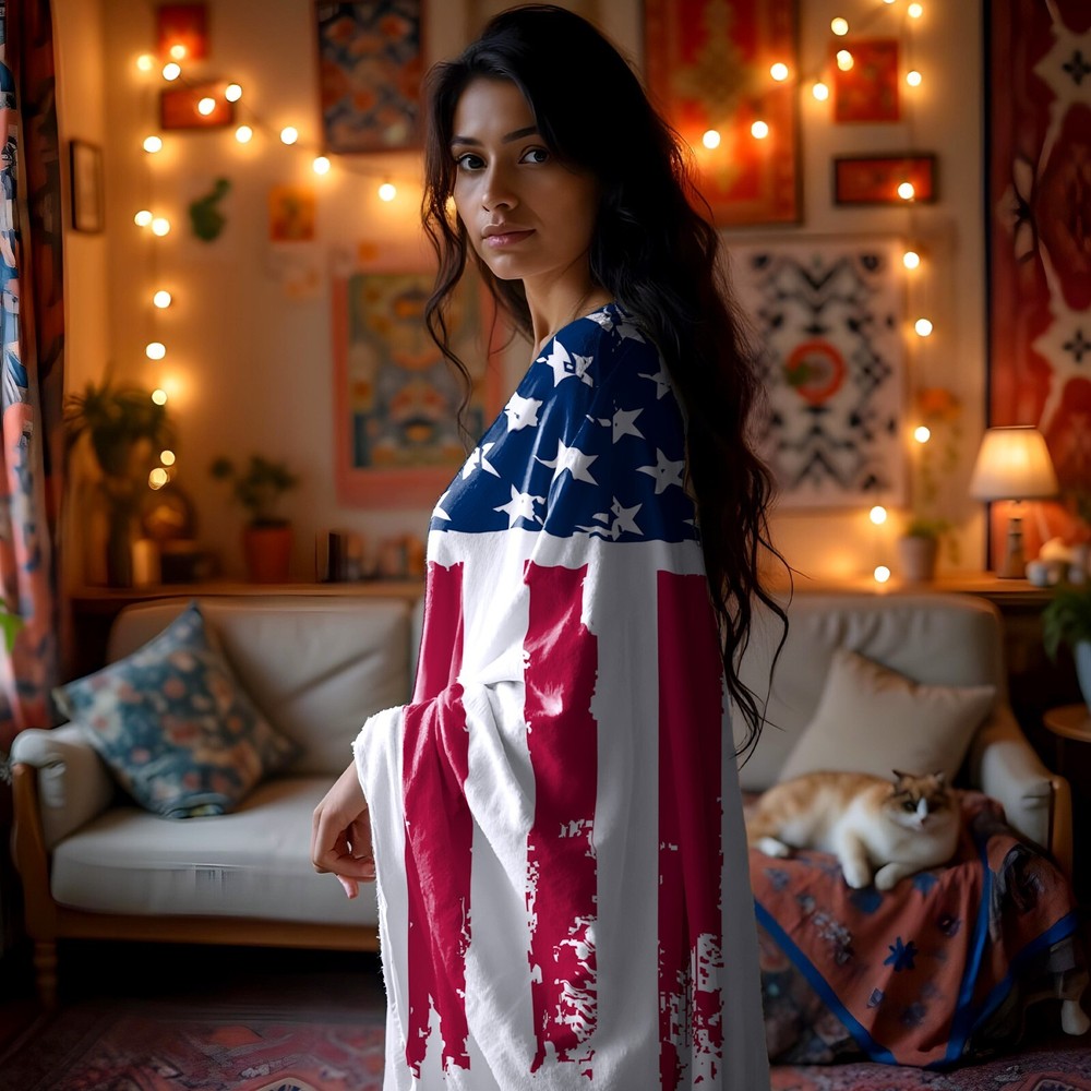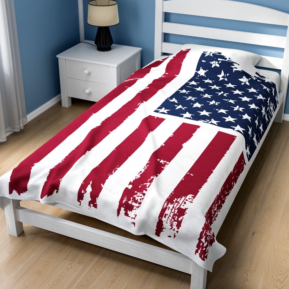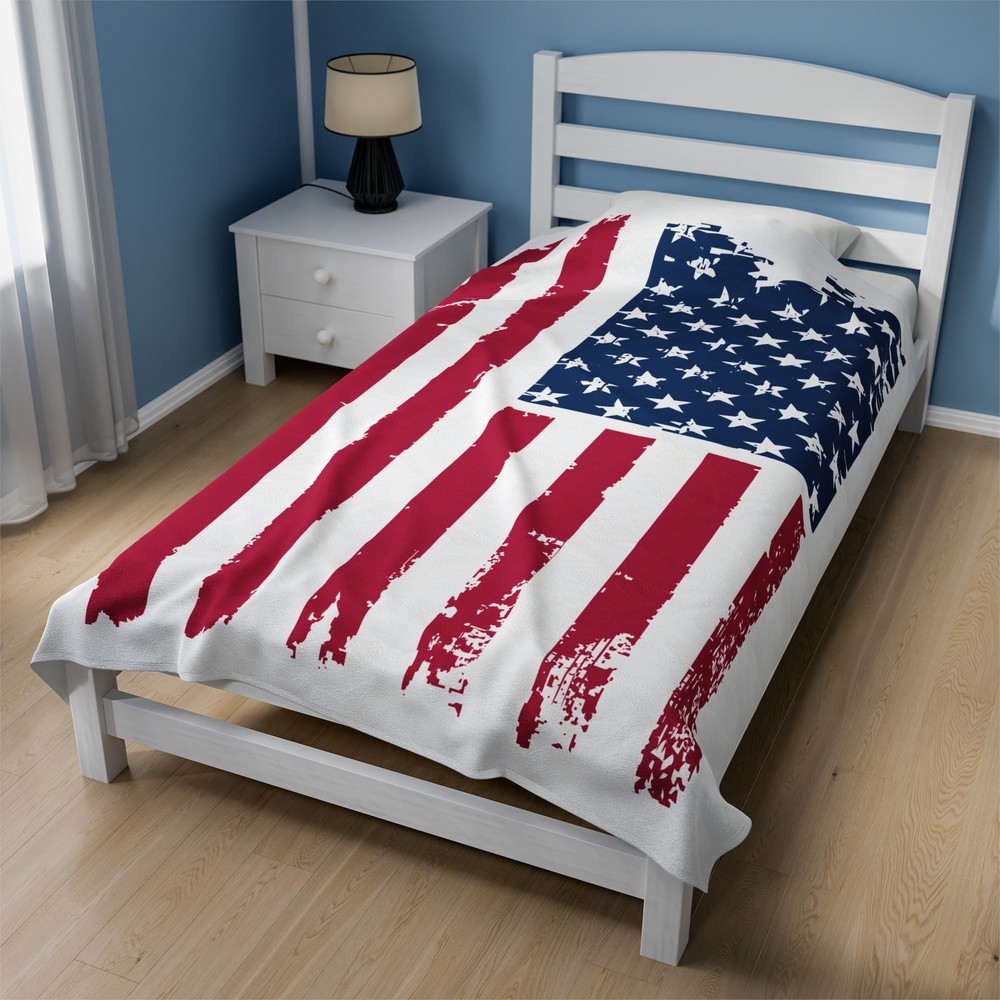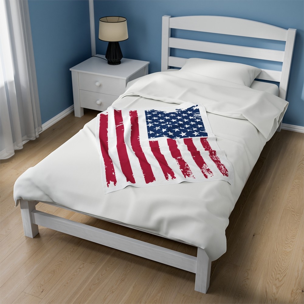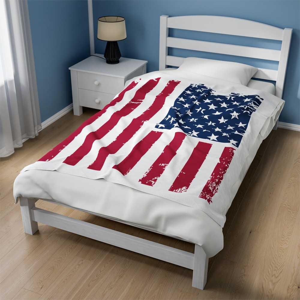 Patriotic US Flag Plush Velveteen Cozy Blanket in Duotone