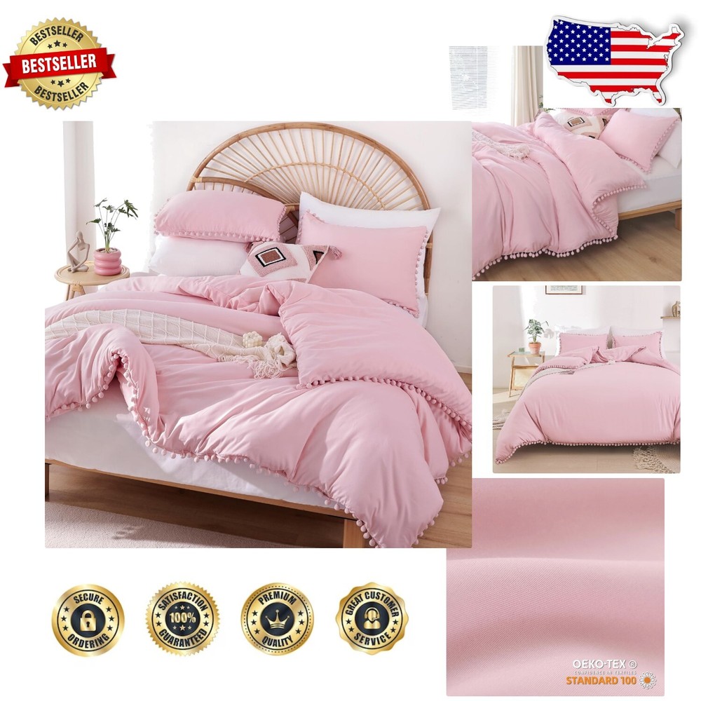 Dust Pink King Size Comforter Set with Pom Fringe - All Seasons Soft Bedding ‹ › ‹ › ‹ › ‹ › ‹ › ‹ › ‹ › ‹ › ‹ › ‹ › Dust Pink King Size Comforter Set with Pom Fringe Elevate your bedroom to a new level of elegance with our exquisite Dust Pink King Size Comforter Set, designed for all seasons. Soft and luxurious, this bedding ensemble is perfect for those who appreciate comfort and style. Set Includes: 1 King Size Comforter (104 inches x 90 inches) 2 Pillowcases (20 inches x 36 inches) Features: Soft & Comfortable: Crafted from premium microfiber, this comforter set is uniquely stone-washed to create a softness that is delightfully comforting against the skin. Cozy Year-Round: With its fluffy microfiber filling, experience cloud-like comfort that envelops you in relaxation, making it ideal for any season. Pom Fringe Design: Adorned with durable ball tassels along the three sides of the comforter and pillowcases, this unique design detail complements any room's decor style. Safe Materials: Our comforter set is Standard 100 by OEKO-TEX certified, ensuring it meets high safety standards for harmful chemicals, providing a safe and cozy environment for you and your loved ones. Easy Care: Enjoy hassle-free maintenance; simply machine wash in cold water on a gentle cycle for a like-new restoration. Why Choose Our Comforter Set? Indulge in the luxurious embrace of our Dust Pink King Size Comforter Set, offering not only fabulous aesthetics but ultimate comfort. The combination of soft microfiber and charming pom fringe offers you a perfect blend of sophistication and relaxation. Ideal for enhancing your sleep sanctuary or gifting to a loved one. Transform your space today—order the Dust Pink King Size Comforter Set and experience the difference in quality and design! Shipping Free & Fast Shipping - We offer free shipping to most of the USA with a normal delivery time of 3-7 days. However, due to the current situation, additional delivery time (up to 3 weeks) may be required for some items. Alternative Carriers - We may use alternative carriers (e.g. USPS, FedEx, UPS, etc.) to ensure your package arrives safely and on time. Due to the use of multiple carriers, we are unable to provide a tracking number automatically. Handling Time - Orders are processed and shipped within 1-2 business days of receiving cleared payment. Shipping Restrictions - Shipping to Alaska, Hawaii, Puerto Rico, Guam, and other US territories may incur shipping charges or delivery restrictions. Please contact us before ordering, or your order can be refunded/cancelled. State Restrictions - There may be restrictions based on your state of purchase. For example, certain items may not be shipped to California due to state regulations. Contact for Tracking Updates - If you require tracking updates or have any concerns about the delivery of your order, please feel free to contact us, and we will be happy to assist you. Return 30-Day Hassle-Free Returns - We want you to be completely satisfied with your purchase. If you are not, you can return the item within 30 days of receiving it for a full refund or exchange. Easy Return Process - To start a return, simply contact us and we will provide you with a prepaid return shipping label and detailed instructions. Restocking Fee - There are no restocking fees for returns. However, the buyer is responsible for return shipping costs if the return is not due to a seller's error. Refund Processing Time - Refunds will be processed within 5 business days of receiving the returned item in its original condition. Payment We accept all major credit cards, PayPal, and Apple Pay for your convenience. Your payment information is secure and encrypted to ensure a safe and seamless transaction. Please complete your payment within 3 days of purchase to avoid any delays in shipping. Feedback Your feedback is extremely important to us. We strive to provide the best products and customer service possible. If you are satisfied with your purchase, please take a moment to leave us a positive review. If you have any concerns or issues with your order, please contact us before leaving negative feedback. We are committed to resolving any problems and ensuring your satisfaction. Contact Us If you have any questions or concerns, please feel free to reach out to our customer support team. You can contact us through the eBay messaging system. We are available Monday to Friday, 9:00 am to 5:00 pm EST, and we will do our best to respond to your inquiry within 24 hours. Buy it now and enjoy a pleasant shopping experience! UPC: Not Set Model: Not Set Set Includes: Comforter,Pillow Sham Material: Microfiber,Polyester Features: Breathable,Soft,Comfortable,Durable Theme: Seasonal Character: Not Set Care Instructions: Machine Wash,Machine Wash Cold Department: Adults Room: Bedroom Labels & Certifications: Not Set Size: King Type: Comforter Set Brand: Unbranded Color: Dust Pink Fill Material: Polyester Pattern: Solid Item Width: Not Set Item Length: Not Set MPN: Not Set Number of Items in Set: 3 Style: Bohemian Character Family: Not Set Insulation: All Seasons Season: All Country/Region of Manufacture: Not Set Closure Type: No Closure Drop Length: Not Set Thread Count: 200 or Less GSM (Grams per Square Meter): Not Provided Product Line: Not Set Personalize: Not Set