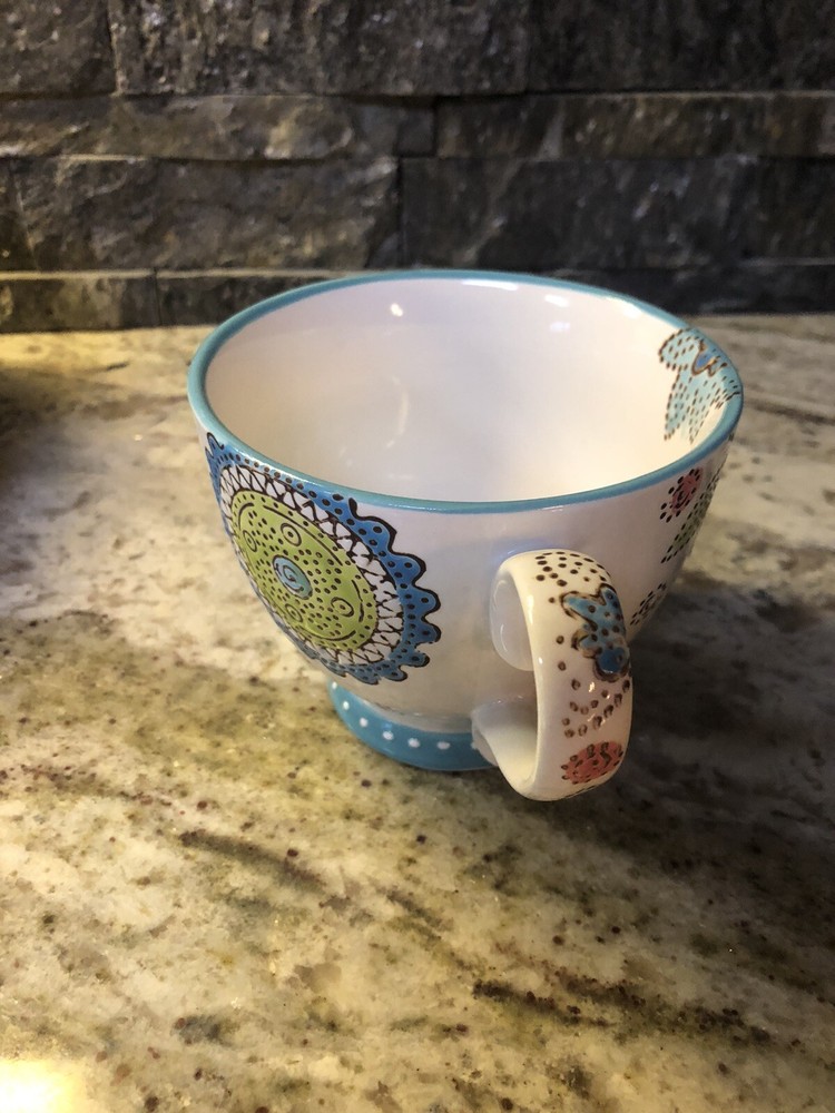 Dutch Wax Coastline Imports Mug Floral Design Hand Painted. Excellent condition!...