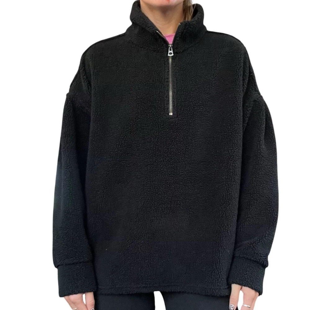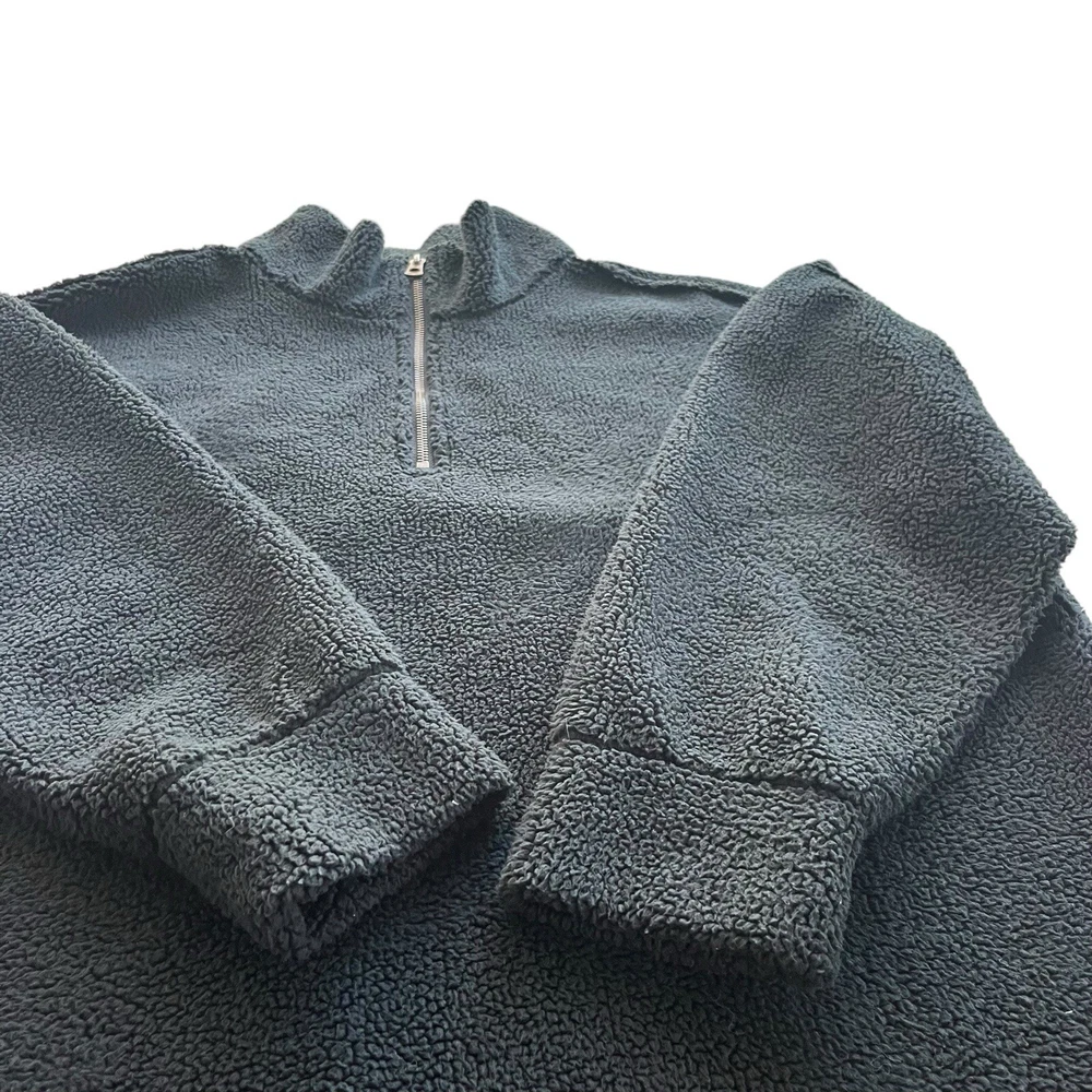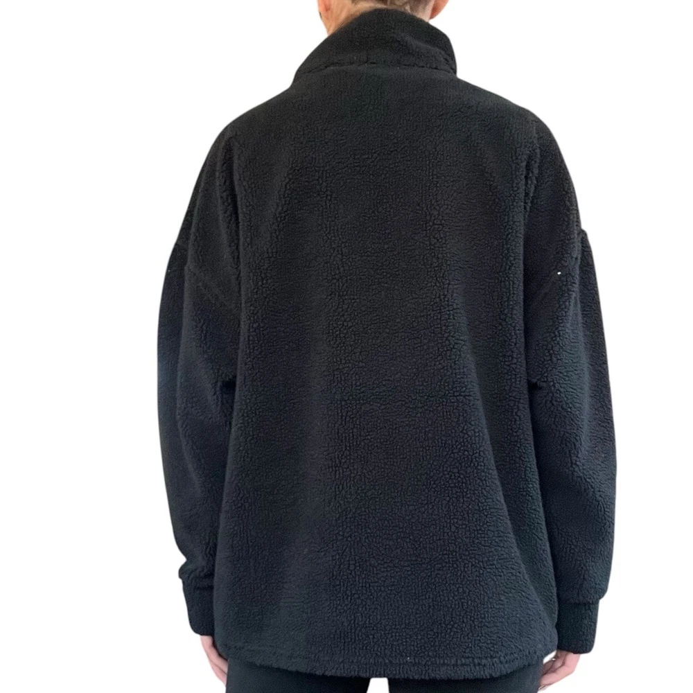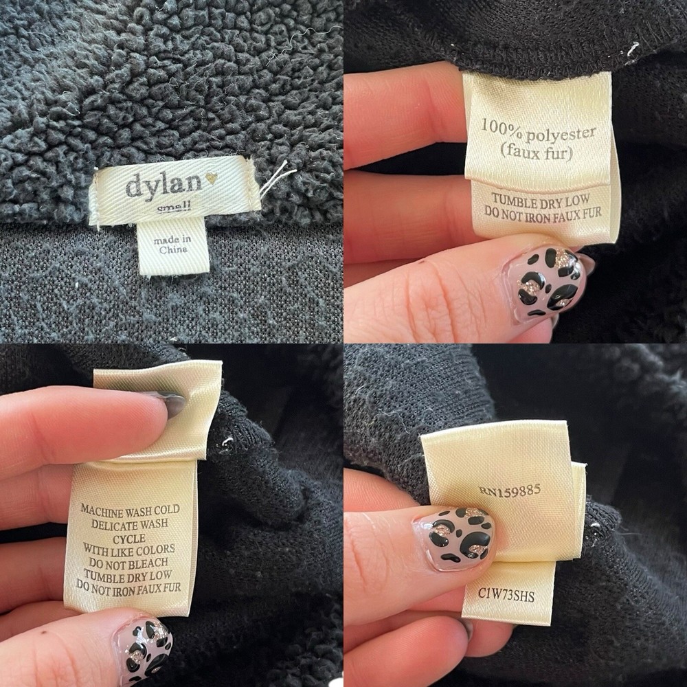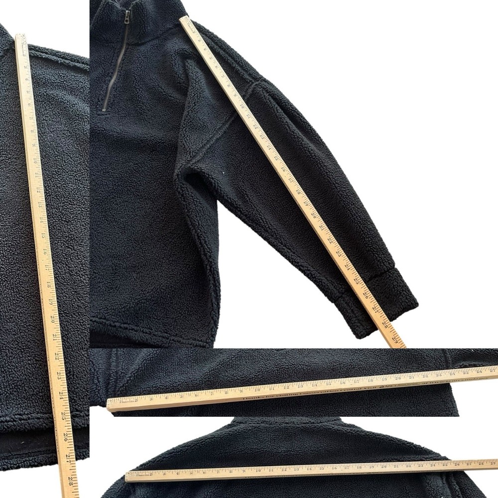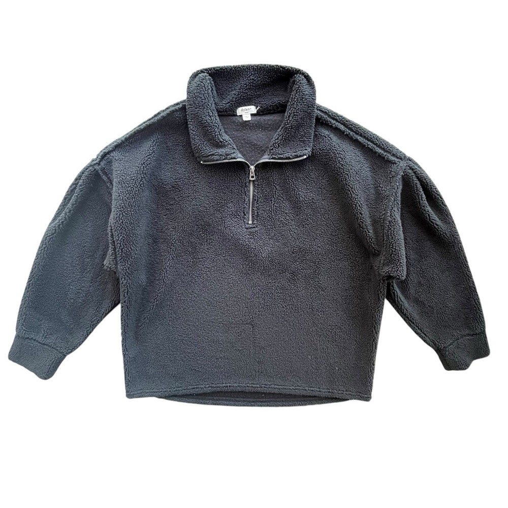Dylan Women’s Small Black Raw Seams Plush Teddy Fleece 1/4 Zip Pullover C1W73SHS •Boho, comfy, cozy, chic, casual, plush, Sherpa, Teddy, fleece pullover •Collared •1/4 quarter zip •Dylan engraved logo on zipper •Pullover •Long sleeves, pleated shoulder accent •Raw, unfinished, seam detail throughout jacket •Oversized relaxed fit •Super soft and cozy Sherpa, Plush, Teddy, fleece, faux fur material •Brand: Dylan •Style: Raw Seams Plush Teddy Fleece 1/4 Zip Pullover #C1W73SHS •Color: Black •Size: Small •Measurements: taken flat approximate *Length: front 25 in. Back 27 in. *Pit to pit: 24 in. *Sleeve length: 28 in. *Shoulder to shoulder: 25 in. •Material: 100% Polyester, faux fur •Made in China •Pullover is in good pre-owned condition; slight pilling throughout due to normal wear and wash, all pictured •Color may appear slightly different on different devices due to device settings. All photos taken in natural light. I try to be as accurate as possible!