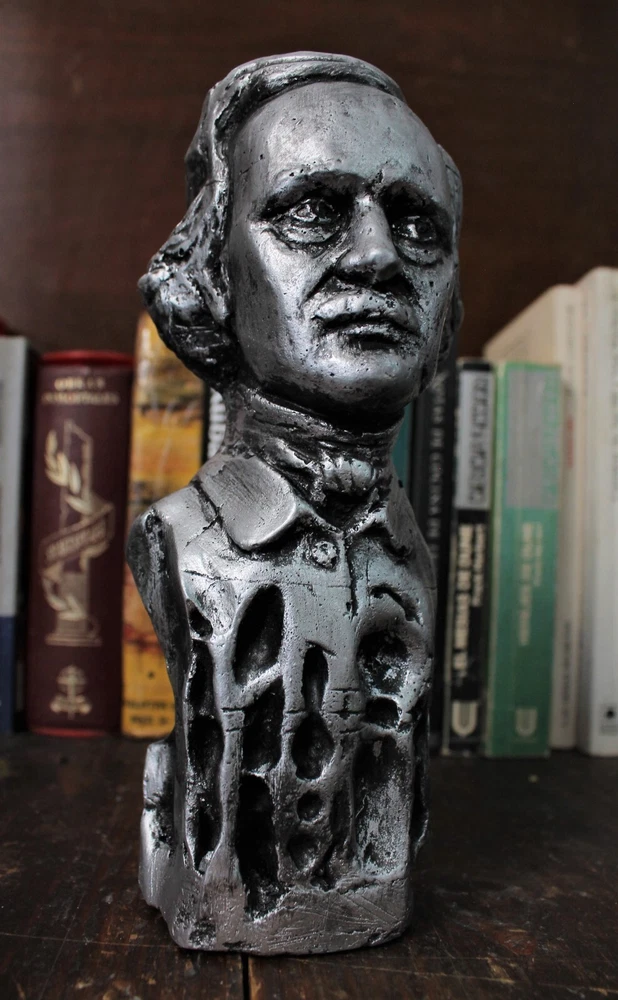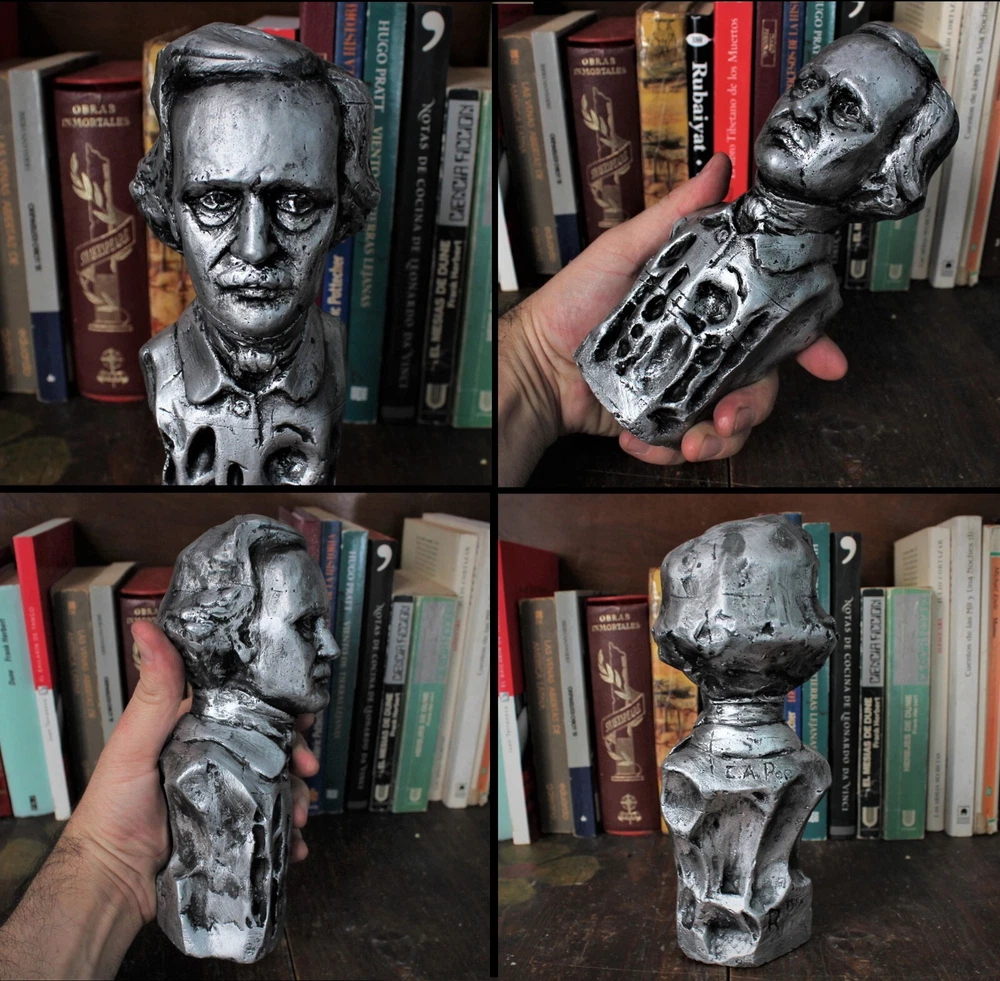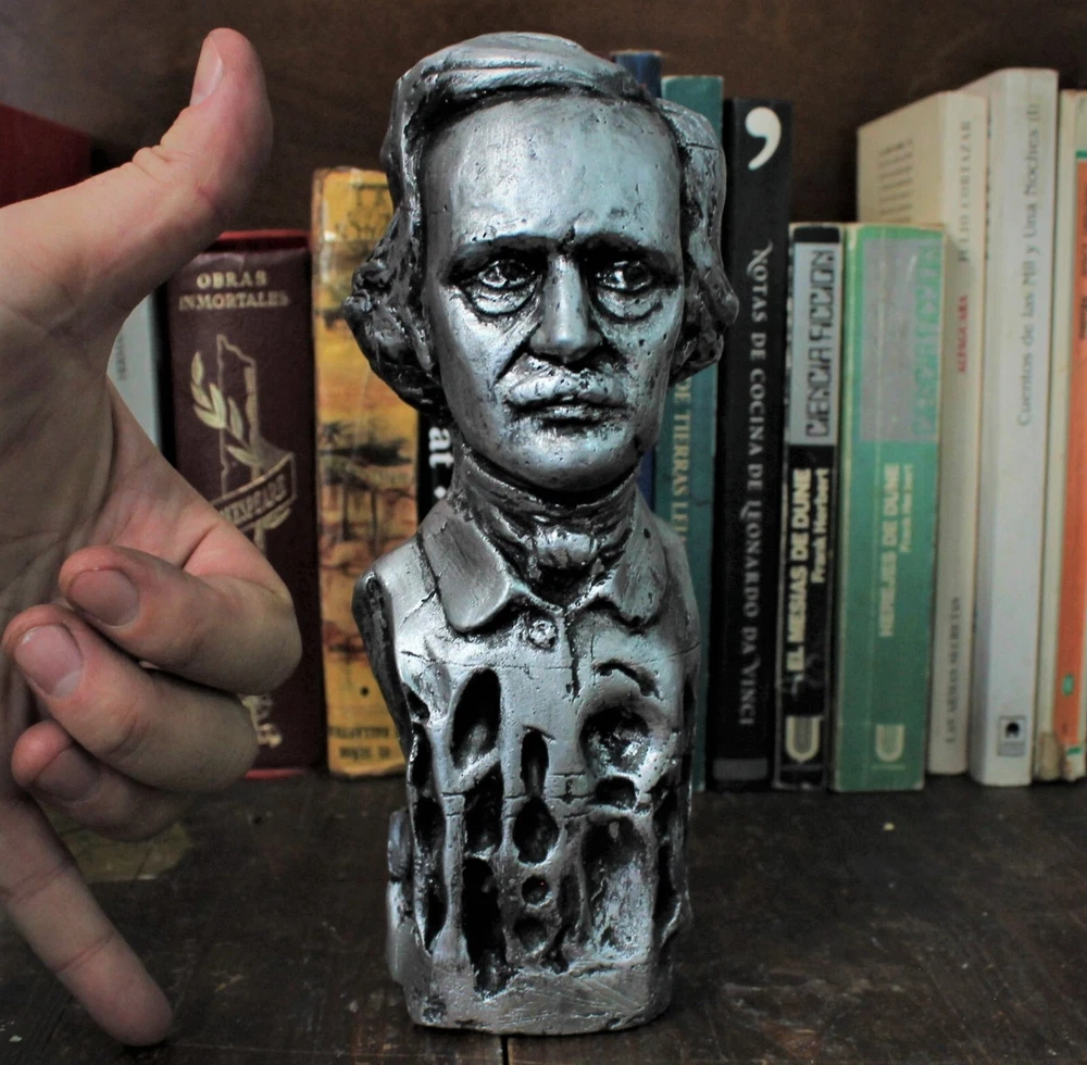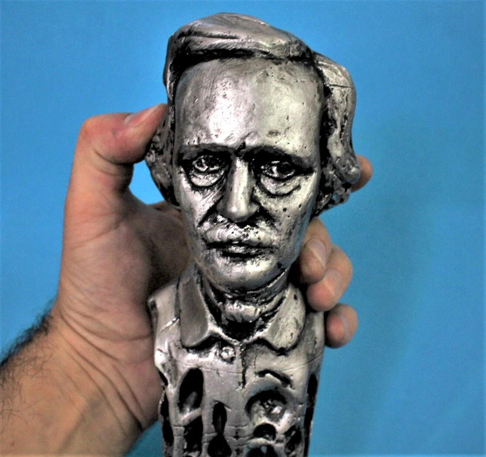 EDGAR Allan POE silver Metallic Painted BUST 7 " SCULPTURE Figure Statue Sculpture American Writer - LOOKS REALLY METAL ! bookshelf gift desk Mind art Gift, bookshelf, - Artistic bust Measures : 7" Inches Tall (18cm) Width 4" inches Weight 650gms * YOUR OFFER IS ONLY FOR "EDGAR ALLAN POE" SILVER PAINTED BUST 7" Material: Best Quality ever in Yeso París / CRAFTED DETAILS Expresionism style. / An exquisite handcrafted work Hyper realistic style Made with a post-processed artisan treatment special METALLIC paint + blow-off to give it shadows and polishing. A very beautiful and detailed piece, carefully polished. M ade by Pro Sculptor with hand finished to obtain shadows and all the details . *These is NOT a 3d print !!!!: These are SCULPTURES made with the CLASSIC artisanal process of casting molds. They have good Material Weight and are not made by a machine DISCOUNTS Request your discount before bidding! It is very possible that depending on your Location, through FEDEX we can give you a good extra discount! If you are interested in this, always ask us your question "before purchasing", and provide us in that message with the location data: Country, Province and Postal Code, and we will very possibly be able to Quote you and create a publication with less special value for you. Also quoting more than one product gives you even more discounts! (Ebay allows us to request this information from you to quote) HISTORY: Edgar Allan Poe was an American romantic writer, poet, critic and journalist, generally recognized as one of the universal masters of the short story, of which he was one of the first practitioners in his country. He was a renovator of the Gothic novel, remembered especially for his horror stories NOTICE: This is a hand crafted artisanal product and is considered FAN ART. It is made by hand by Argentine artisans. ideal to give to people who love Art, Literature, Mistery, Poetry, Horror, Drow, Paint, Illustrate, History of art, and suspense You can ask us for others SCULPTURES of ART, MUSIC, FANTASY, LITERATURE, SPORTS, ROCK Comics and others recognized characters maked by Different huge artists Like: Nietzsche, Marx, Cervantes, Frida Khalo, Heagel, Trotski, Schopenhauer, Lenin, Freud, Fid el Castro, Che Guevara Fangio, Maradona, Messi, Borges, Cortazar, Daguerre, Atahualpa, Mandela , Dalí, Tesla, Olmedo, Federer, Chaplin, MESSI, BOCHINI, RIQUELME, GALLARDO, BIANCHI, Pope Juan Pablo 2nd, Madre Teresa de Calcutta, Astor Piazzolla, Osvaldo Pugliese, Carlos Gardel, Anibal Troilo (Pichuco) Roberto Goyeneche, JUAN DOMINGO PERÓN, NESTOR KIRCHNER, ALFONSÍN, Cervantes, Louis Daguerre, Padre Francisco, , Nippur the Lagash, Corto Maltés, Asterix, Obelix, Tin Tin, Heman Motu, Speed Racer, The nightmare before christmas, Mazinger, Astro boy, Jack skeleton, Sally, Super Heroes, Avengers, Cowboy Bebop, Mafalda, Lord of the rings, Star wars, MOTORHEAD, Black Sabbath, ACDC, IRON MAIDEN, THE BEATLES, ROLLING STONES , ELVIS PRESLEY, NIETZCHE, CHARLY GARCÍA, GUNS & ROSES, SODA STEREO (CERATI) , LOS REDONDITOS y EL INDIO, SPINETTA, BBKING, , LUCA PRODAN, BOB MARLEY, JUDAS PRIEST, TANGO , FREUD , , and MUCH MORE available for sale, please check our other listings IN LAST PHOTOS OF THIS ARTICLE YOU CAN SEE MANY OF OUR OTHER PUBLISHED ART PRODUCTS Consult us! Shipping We ship exclusively with FEDEX / DHL Shipping costs Shipping costs by DHL: America $35 - Europe $40 - Asia/Africa/Australia $50 Shipments to the whole world. If you would like to make a larger purchase, please contact us so we can give you a special discounted shipping rate accurate to your location. Professionally Packed. Door to door service. Fast shipping and handling times. Online Tracking Information through DHL website Insurance Included For your safety, this product has insurance included against theft, damage or loss IMPORTANT Import duties, taxes, and all charges or expenses at destination are not included in the item price or shipping cost. "These charges are the buyer's responsibility". Any expense or cost that accrues from the "lack of commitment to receive or pick up the package (returns, cancellation or abandonment) will also be the responsibility of the buyer. Please check with your country's customs office to determine what these additional costs will be prior to bidding or buying RETURNS We accept Returns: The Shipping costs or taxes generated by this are the sole responsibility of the Buyer. The product must be returned in perfect condition, unused and with protection and packaging in excellent condition. Payment by Payoneer only Feedback If our attention and the product seem good to you, please, when you receive your purchase, leave a comment, since we always leave a comment for buyers / sellers It really helps build our reputation and other buyers to see the quality of our work We are ART & TOYS Specialists in selling all kinds of Art items and Collectibles such as Sculptures, Busts, Miniatures, new and used Toys, Antiques, Masks and costumes made by special effects professionals, Model kits, comics, Science Fiction, and everything type of curious collector's items. Visit our other articles! If you have any questions - please contact us! we guarantee you quick answer to all your questions Thanks!
