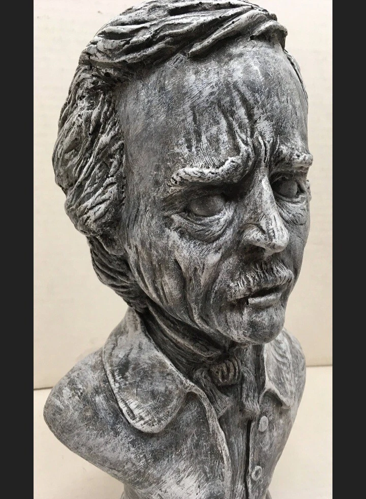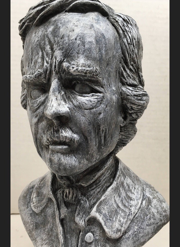 UP FOR BIDS 1 HAND MADE PAINTED EDGAR ALLEN POE BUST YOU WILL RECEIVE THE SAME SCULPTURE BUT THE PAINT MAY VERY SLIGHTLY. Made of Industrial plaster. Hard stuff but you dont want to drop it in the floor. Measures about 9.5 inches tall and 6 inches across shoulder to shoulder and 3.5 inches across base I WILL SHIP INTERNATIONAL USING THE GLOBAL SHIP PROGRAM PROVIDED BY E- BAY PLEASE SEE THERE TERMS BEFORE YOU BID. THANKS FOR CHECKING OUT MY STUFF. THERE IS MORE TO COME SO CHECK BACK
