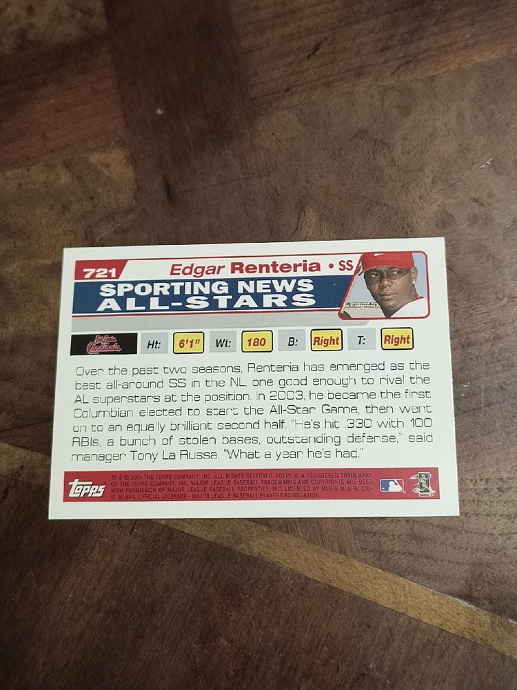 THIS IS FOR A EDGAR RENTERIA 2004 TOPPS SPORTING NEWS ALL STARS #721 FREE SHIPPING
