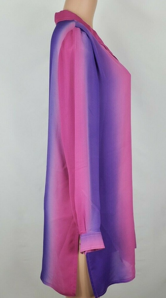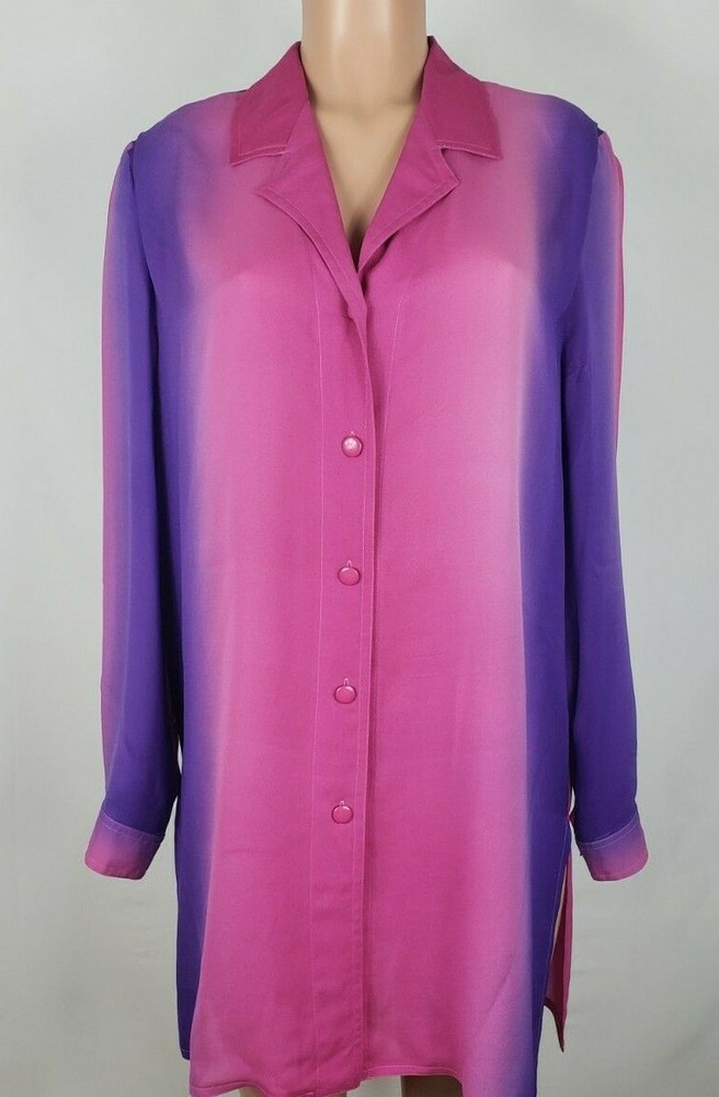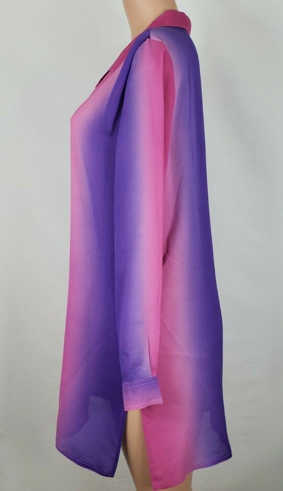 EDGAR VOS Boutique Women's Size 40/42 Pink Purple Blouse Tunic Sheer Long Sleeve Button Front Q39 Size 40/42 Armpit to Pit 46” Length 33.50” Material: Unknown Pre owned gently used, no signs of damage. All Measurements are approximate. Payment is due within 2 days of purchase Combined shipping on multiple orders. Items will be shipped either USPS or FedEx Thank you for looking!