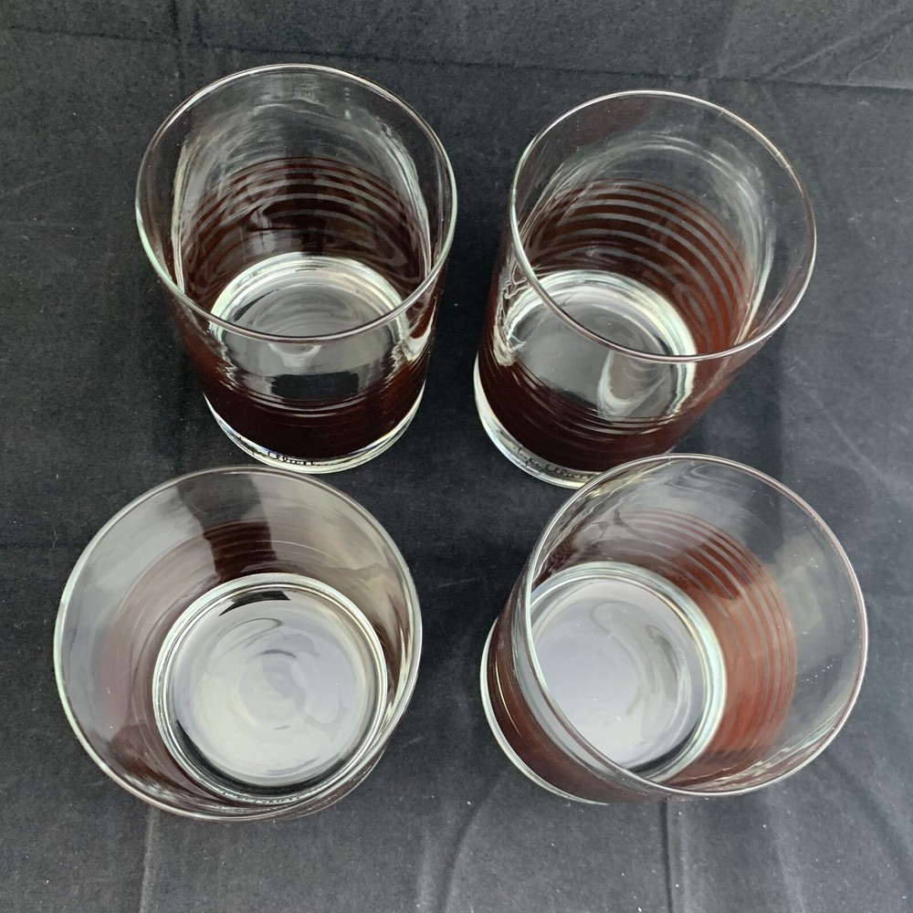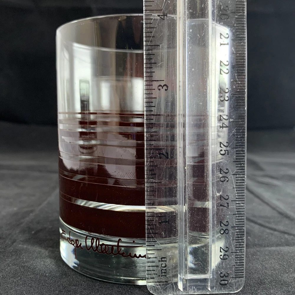 Glasses are in good, preowned vintage condition, one glass has a scratch, see photos for details 4 Vtg MCM EDGAR WATKINS Old Fashioned, Retro Rocks Glasses Signed Brown Stripes....