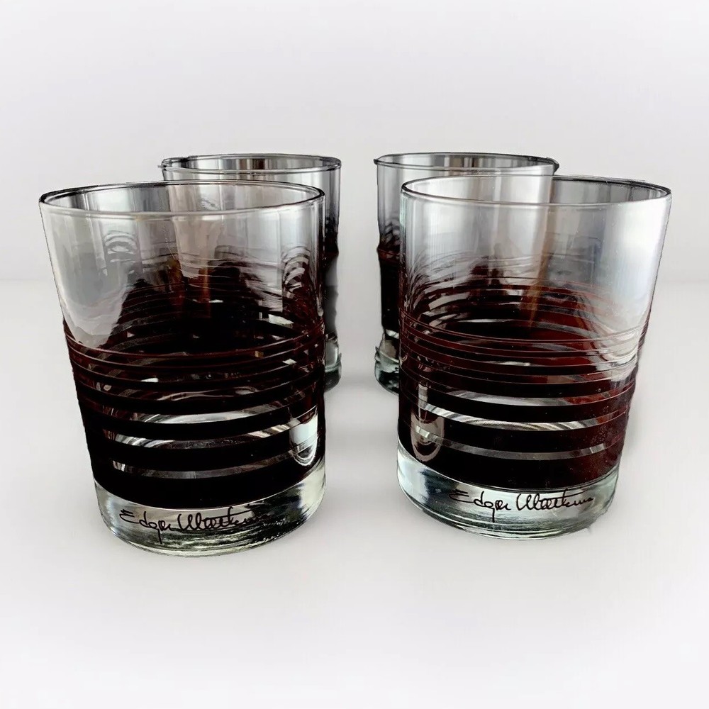 Glasses are in good, preowned vintage condition, one glass has a scratch, see photos for details 4 Vtg MCM EDGAR WATKINS Old Fashioned, Retro Rocks Glasses Signed Brown Stripes.