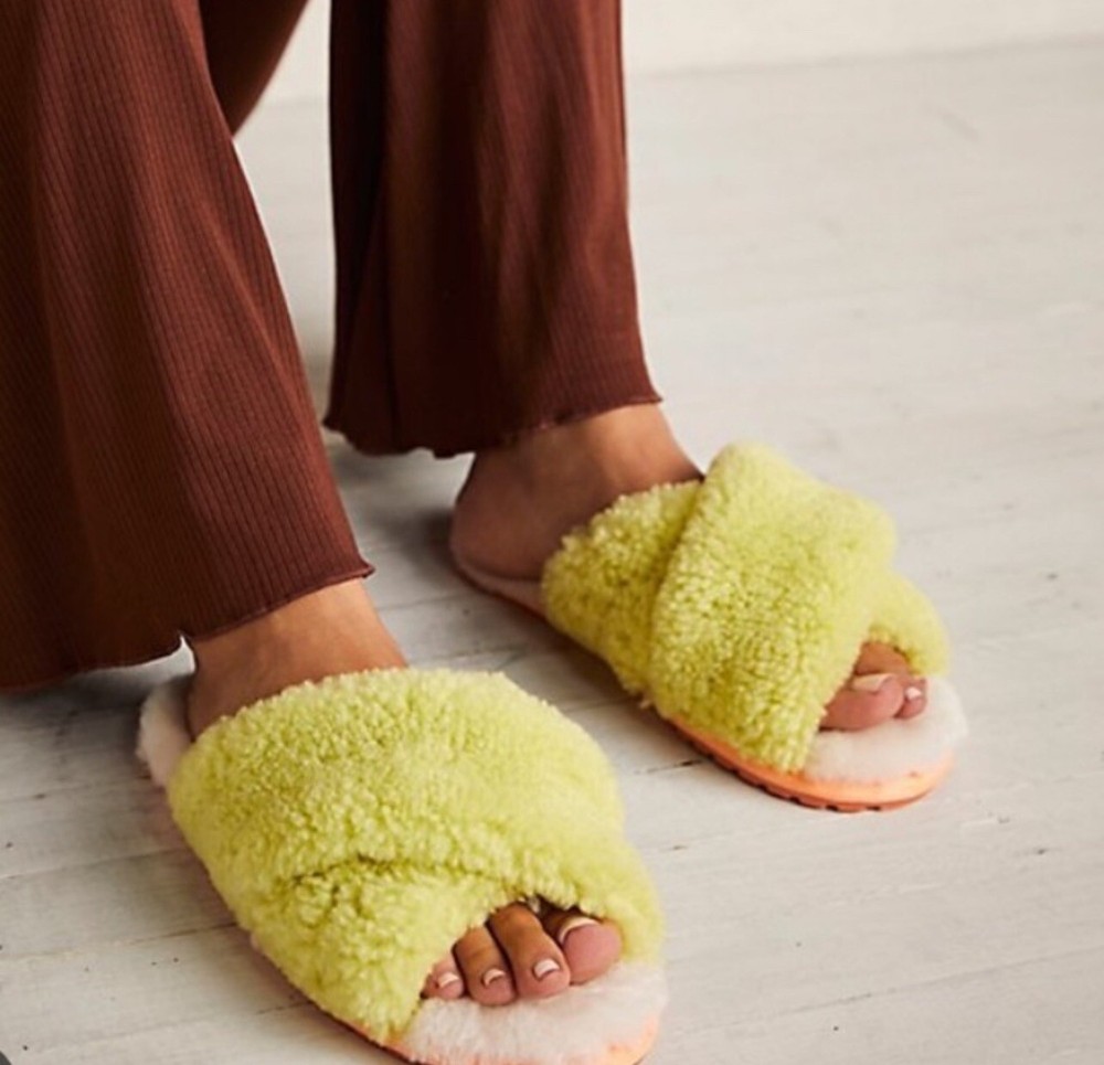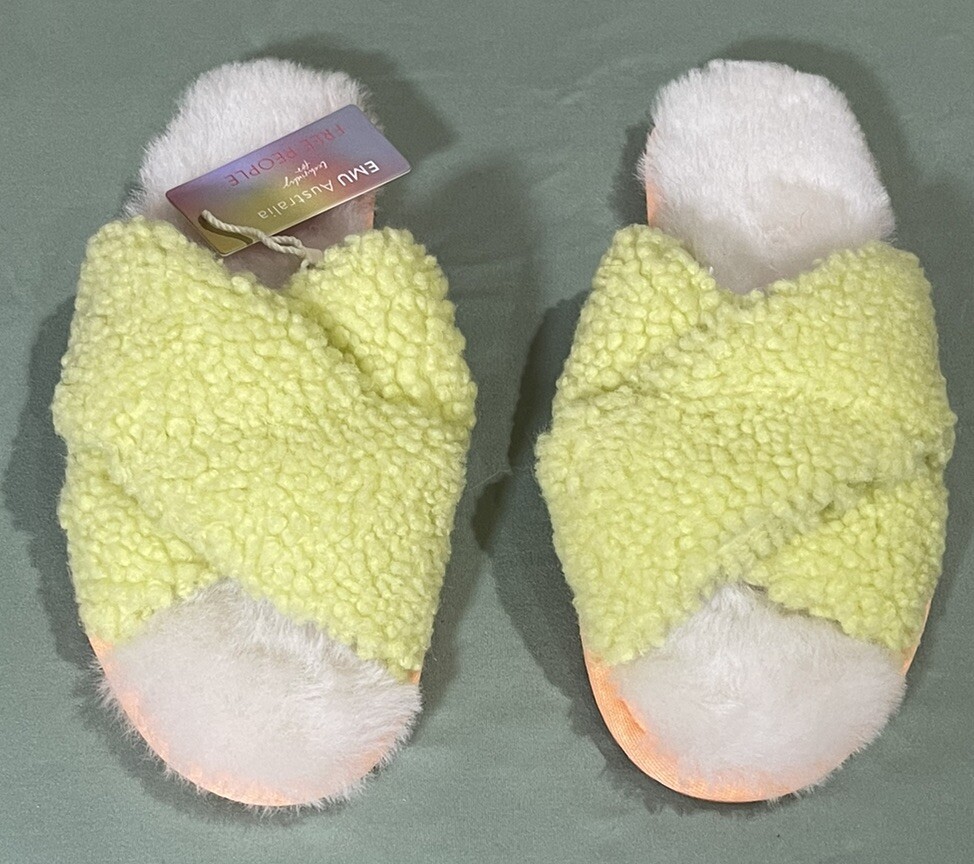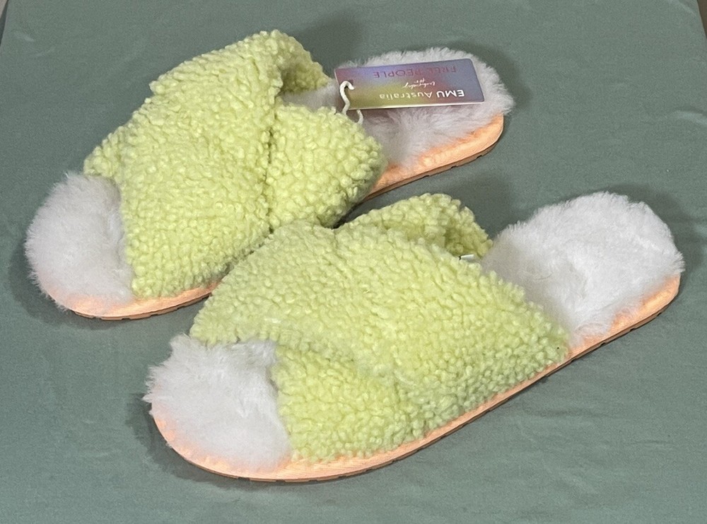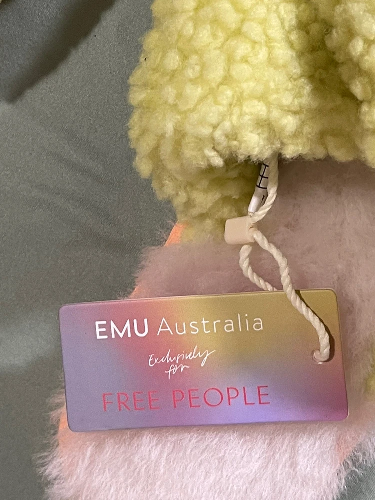 EMU Australia x Free People Mayberry Teddy Cozy Slippers Charcoal Gray Size 8 NWT $69 New With Tag Black X On Inside Label To Prevent Returns Fabric Type Sheepskin Rubber Gripped Sole Please Note These Run Small A Free People exclusive with EMU, these so comfy and cozy slippers are featured in an ultra-plush, Australian sheepskin and slip-on style with crossover straps and an open toe. Gripped bottom Moisture wicking fabrication Woolmark accredited Fit: Runs small, we recommend sizing up. Contents Sheepskin, Rubber