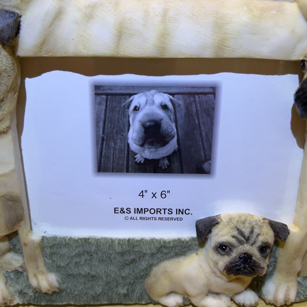 E&S Imports Pug Dog Family Photo Frame 4" x 6" Photo Picture Frame Dog Family....