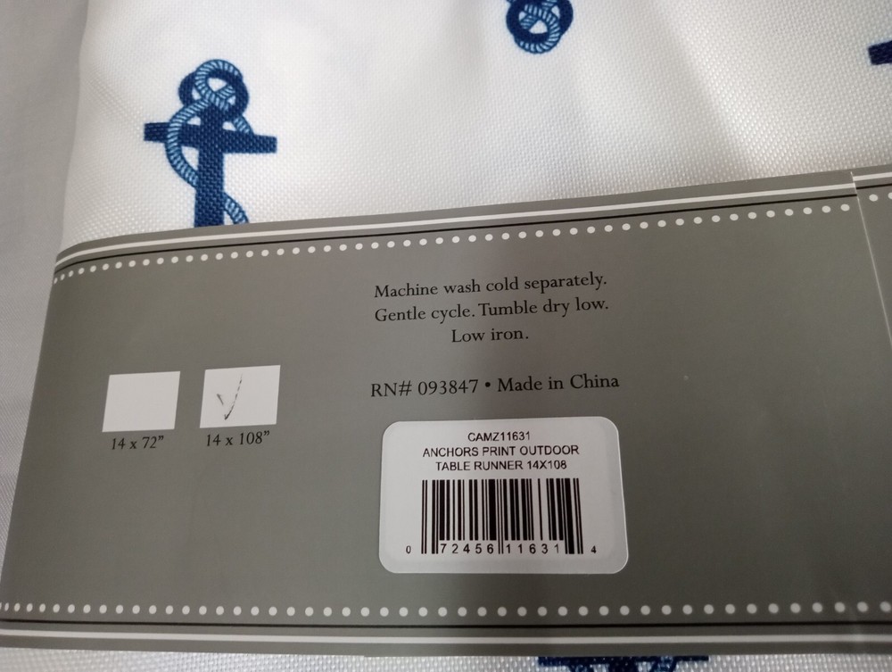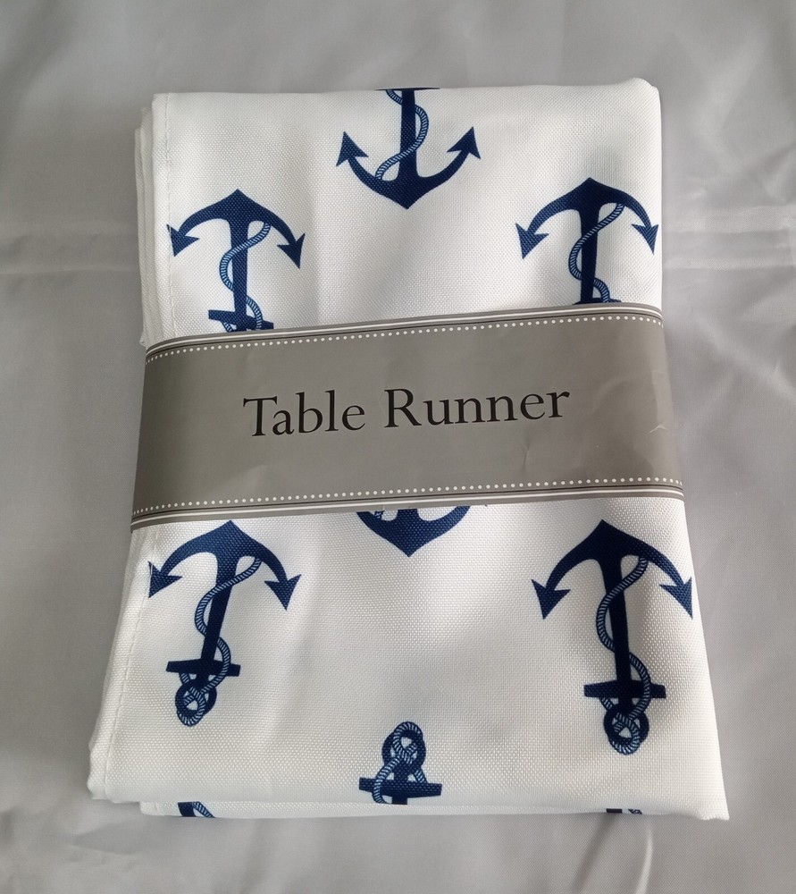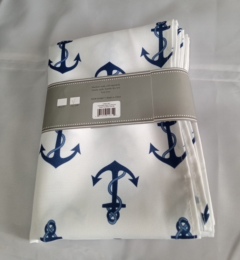 USED ONCE! Outdoor Table Runner 14" X 108" ANCHORS PRINT ~ Waterproof ~ Stain Resistant ~ Machine Washable...