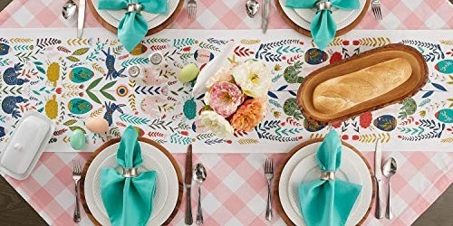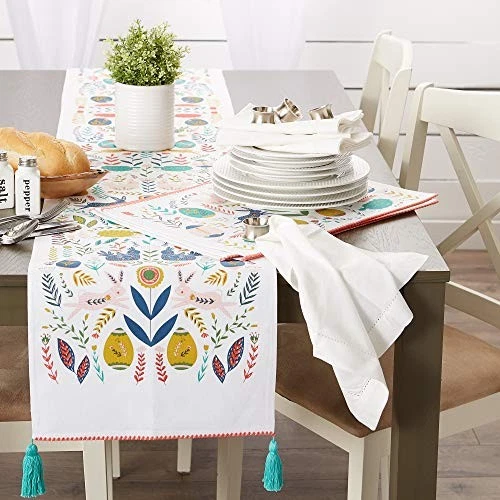 30 Days Return Policy Fast Delivery Trusted seller Easter Folk Collection, Kitchen Tabletop, Table Runner, 14x108, Easter Folk Product Description Cotton CREATE A FUN & RELAXED PLACE SETTING: This table runner measures 14x108” in size, appropriate for a table that can seat 6-8 people EASY CARE: 100% cotton. Machine wash in cold water separately, gentle cycle, tumble dry low. Low iron if needed. Cotton may shrink AN EVERYDAY COLLECTION FOR YOUR KITCHEN: Our table runners are available in an assortment of colors and coordinate with our dishtowels, aprons, oven mitts, pot holders, napkins, and more THE TABLE RUNNER YOU'LL LOVE: Place lengthwise onto console tables, dining tables or entryway tables to instantly update up any room DISCOVER : offers an assortment of quality home and kitchen products, the link at the top of this page to explore more Shipping Returns Payment Shipping Shipping is FREE to all addresses other than APO/PO boxes in the lower 48 states. All our stock ships from US-based warehouses. Shipped via USPS or UPS (depending on location and package weight) Unless stated otherwise, all orders will ship within 24-72 hours of your payment being processed. Check our feedback to see the great reviews of FAST shipping we offer. Returns As our valued customer, we will do our best to make sure the product you receive arrives to you on time and as expected. If you are not satisfied with your purchase, please contact us within 30 days of receiving your order to process a return. Payment We currently accept payment via eBay managed payments only. Once payment is cleared, we will dispatch your shipment within 1-3 business days. Please refer to the "Shipping" tab for more information regarding shipping speed to your destination.