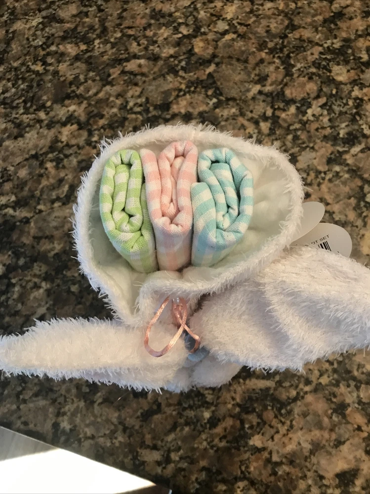 Easter Gift Basket Kitchen and Towel Set 3 16 by 26 inch Towels. New with tags gift set Easter bunny with towels Clean smoke free Ready to ship