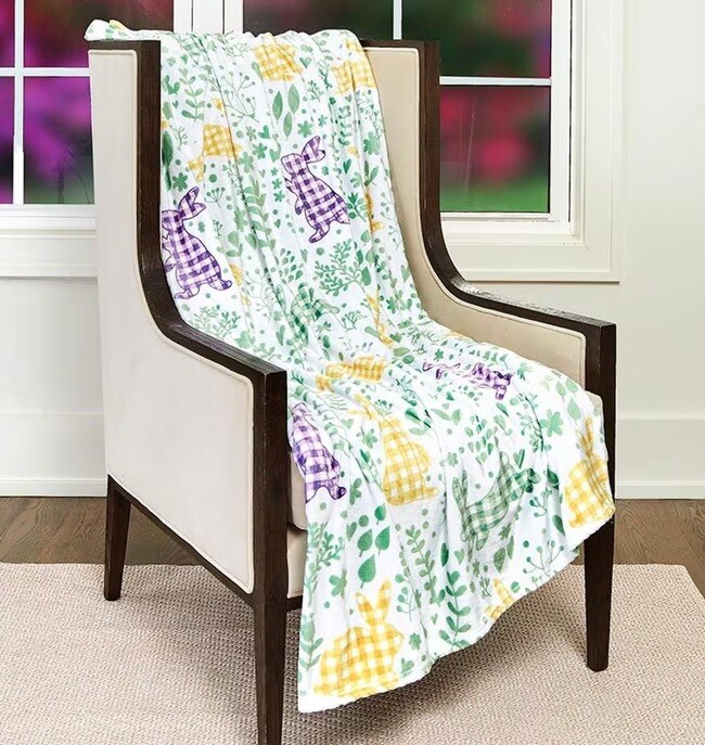Brand New Easter Gingham Buddies Plush Throw Size: Large Color: Yellow, green, purple & white Colors may vary slightly different from the photos due to variations in camera angle and lighting Material: Polyester Snuggle up under the velvety feel of this Easter, plush throw The sweet design will add a touch of spring to your home You’ll reach for it on the seasons cool nights Approximate measurements laying flat Length: 64” Width: 50” Smoke free home PLEASE NOTE: The item you see is the EXACT item you are receiving.. Please see pictures for an accurate description of the item and condition If you have any questions about any of the item or images, PLEASE feel free to message ~~Shipping~~ Only ship in the USA All packages are sent thru USPS ground advantage Will gladly combine shipping for multiple purchases -just add what you want to the cart and wait for an invoice or email us for a quote Shipping discounts will be provided for multiple purchases - Please Contact me after Multiple Purchases for an updated invoice. Item may be shipped via a different method…shipping cost includes labor and materials. ~~Payment~~ To avoid an unpaid buyer strike, Payment is expected within 3 days of purchase otherwise item will be automatically relisted SEE MY FEEDBACK! Buy with confidence!