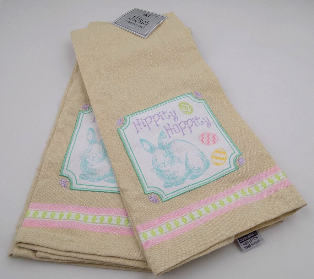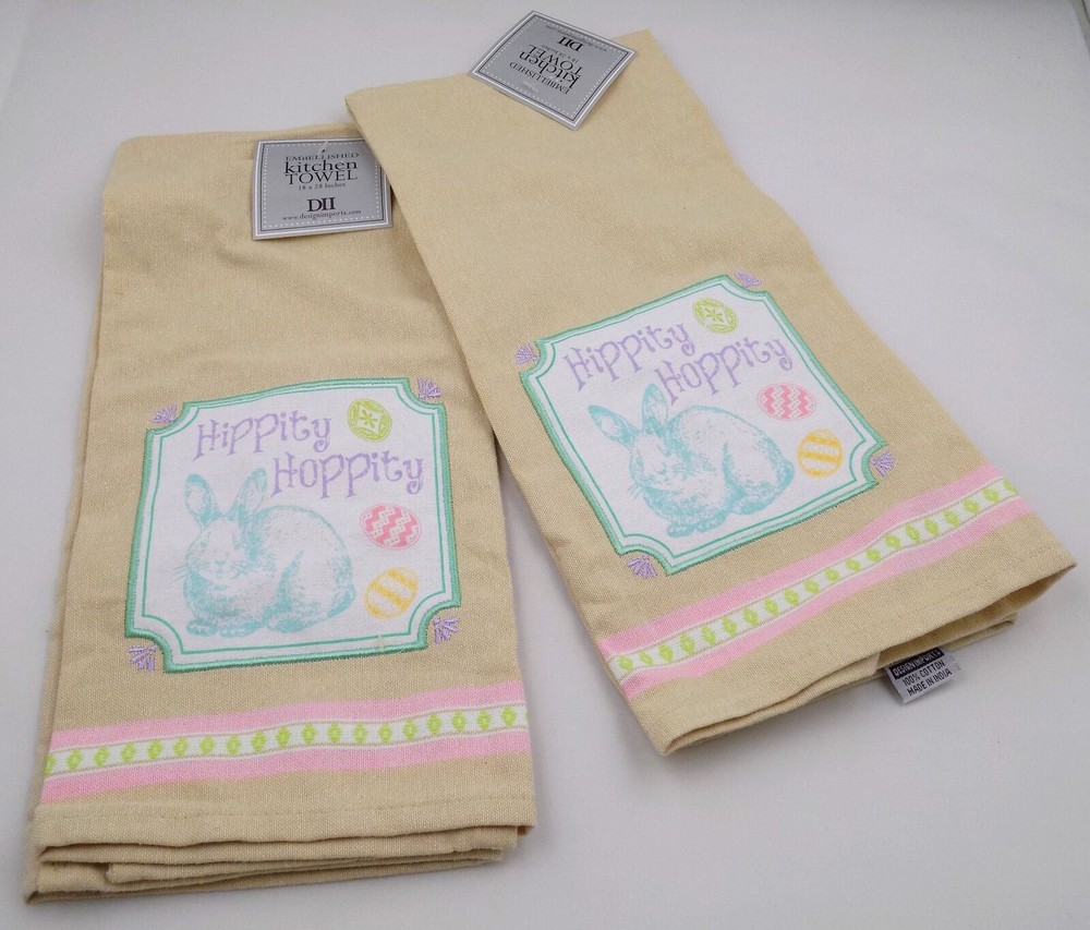 Easter Hippity Hoopity Set of 2 Embellished Kitchen Towels 18" x 28" Bunny ST76 Easter Hippity Hoopity Set of 2 Embellished Kitchen Towels 18" x 28" Bunny ST76 Easter Kitchen Towels Set of 2 Measures Approx. 18" x 24" 100 % Cotton Brand New