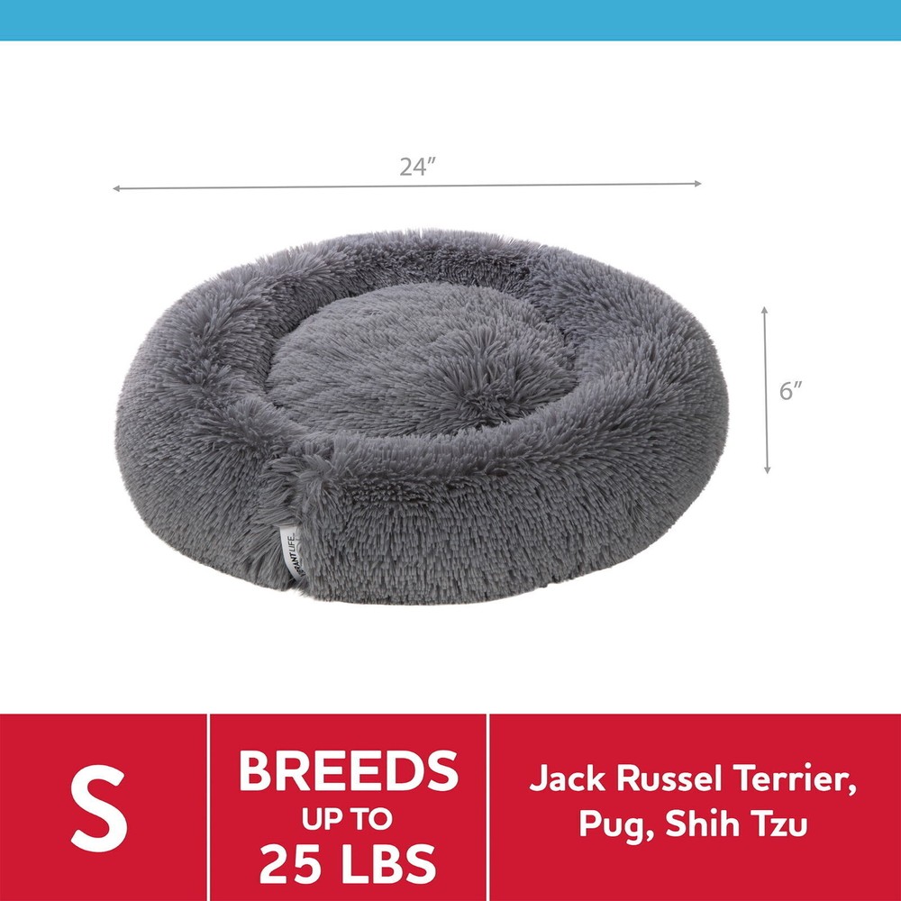 Easy Lounger Mattress Edition™ is a dog and cat bed that provides premium comfort for small pets who like to curl up to rest and lounge. With soft long pile plush, high performance human-grade mattress materials, and an all-around bolster, this bed is designed to provide a comfortable and secure nesting place, giving pets of all ages full body support and ultimate comfort. A great small pet bed for restful sleep or a lounge area in the home, crate, or car. Comes in a home décor friendly fabric. Easy to clean, this bed is machine-washable. Sizing: 24 inches x 24 inches x 6 inches. Ideal for small pets up to 35 lbs. Mattress Edition™ pet beds are part of Walmart's Closed Loop Program and contain recycled human-grade mattress materials and post-consumer recycled fibers, keeping thousands of mattresses from landfills annually and providing full body support and comfort for pets of all ages. Easy Lounger Mattress Edition™ pet bed keeps the equivalent of one hundred & five 16.9 oz plastic water bottles from reaching our landfills, doing our part for the environment one pet bed at a time. PROVIDES COZY AND SUPPORTED RESTwith an all-around bolster ULTIMATE COMFORT with nest-like design to calm and ease anxiety IDEAL PET BED for dogs and cats who prefer to sleep curled-up