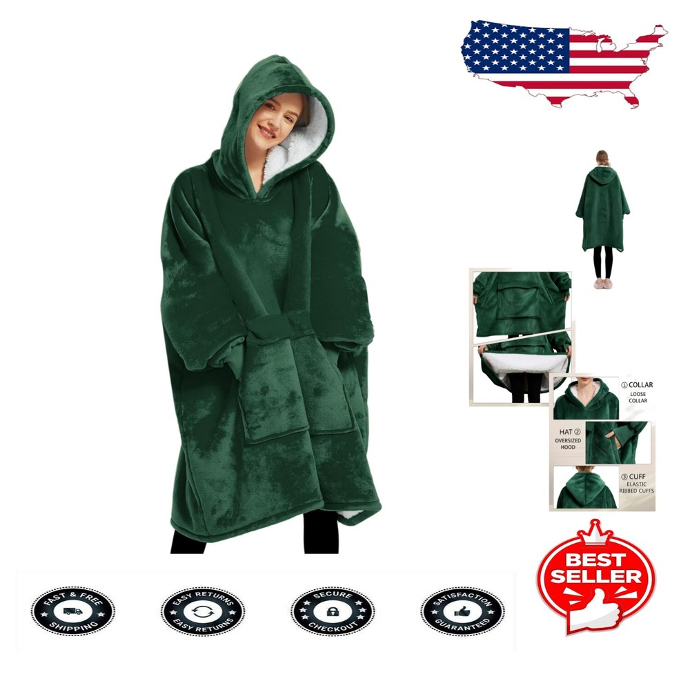 Eco-Friendly Plush Wearable Hoodie Blanket for Adults - Machine Washable < class="slides"> ‹ › ‹ › ‹ › ‹ › ‹ › ‹ › ‹ › Eco-Friendly Plush Wearable Hoodie Blanket for Adults - Machine Washable - 100% Polyester - Imported Features: Patented design (US D967,606 S) combines the coziness of a hoodie with the warmth of a blanket. Made with two layers of cozy plush flannel fabric for superior warmth and comfort. Designed with a soft sherpa lining, spacious kangaroo pouch, and ribbed cuffs. Available in 14 fun and stylish prints to suit all personality types. One size fits all, equivalent to a 6XL sweatshirt, accommodating any body type. Fully machine washable and tumble dried on low for effortless care. Benefits: Offers unparalleled warmth and comfort, perfect for snuggling on the couch or staying cozy at outdoor events. Versatile enough for indoor lounging or outdoor adventures such as barbecues, camping, or picnics. Easy to maintain, ensuring your hoodie blanket looks fresh and feels divine every time you wear it. An ideal gift for friends and family, making chilly days feel like a hug. Why choose our Wearable Hoodie Blanket? Experience warmth like never before with our Eco-Friendly Plush Wearable Hoodie Blanket. Combining innovative design with comfort, it envelops you in softness while offering practicality. Whether you're winding down at home or enjoying the great outdoors, this wearable blanket is your go-to companion. Gift your loved ones the indulgent embrace of warmth this season. Choose a wearable hoodie blanket that’s as stylish as it is cozy – order yours today and be wrapped in comfort! Shipping Free & Fast Shipping - We offer free shipping to most of the USA with a normal delivery time of 3-7 days. However, due to the current situation, additional delivery time (up to 3 weeks) may be required for some items. Alternative Carriers - We may use alternative carriers (e.g. USPS, FedEx, UPS, etc.) to ensure your package arrives safely and on time. Due to the use of multiple carriers, we are unable to provide a tracking number automatically. Handling Time - Orders are processed and shipped within 1-2 business days of receiving cleared payment. Shipping Restrictions - Shipping to Alaska, Hawaii, Puerto Rico, Guam, and other US territories may incur shipping charges or delivery restrictions. Please contact us before ordering, or your order can be refunded/cancelled. State Restrictions - There may be restrictions based on your state of purchase. For example, certain items may not be shipped to California due to state regulations. Contact for Tracking Updates - If you require tracking updates or have any concerns about the delivery of your order, please feel free to contact us, and we will be happy to assist you. Return 30-Day Hassle-Free Returns - We want you to be completely satisfied with your purchase. If you are not, you can return the item within 30 days of receiving it for a full refund or exchange. Easy Return Process - To start a return, simply contact us and we will provide you with a prepaid return shipping label and detailed instructions. Restocking Fee - There are no restocking fees for returns. However, the buyer is responsible for return shipping costs if the return is not due to a seller's error. Refund Processing Time - Refunds will be processed within 5 business days of receiving the returned item in its condition. Payment We accept all major credit cards, PayPal, and Apple Pay for your convenience. Your payment information is secure and encrypted to ensure a safe and seamless transaction. Please complete your payment within 3 days of purchase to avoid any delays in shipping. Feedback Your feedback is extremely important to us. We strive to provide the best products and customer service possible. If you are satisfied with your purchase, please take a moment to leave us a positive review. If you have any concerns or issues with your order, please contact us before leaving negative feedback. We are committed to resolving any problems and ensuring your satisfaction. Contact Us If you have any questions or concerns, please feel free to out to our customer support team. You can contact us through the eBay messaging system. We are available Monday to Friday, 9:00 am to 5:00 pm EST, and we will do our best to respond to your inquiry within 24 hours. Buy it now and enjoy a pleasant shopping experience! Item Length: Wearable Blanket Hoodie for Adults Item Width: Wearable Blanket Hoodie for Adults Unit Quantity: 3.21 Material: Polyester,100% Polyester Features: Machine Washable,Sherpa Lining,Kangaroo Pouch,Ribbed Cuffs,Oversized,Two Layers,Warm and Comfortable Care Instructions: Machine Wash,Tumble Dry Low Department: Unisex Adult Room: Living Room,Outdoor Size: Adult Type: Wearable Blanket Hoodie Color: Emerald Green Style: Modern Shape: Rectangular Insulation: Warm Closure Type: No Closure GSM (Grams per Square Meter): Unknown Thread Count: Unknown Unit Type: lb