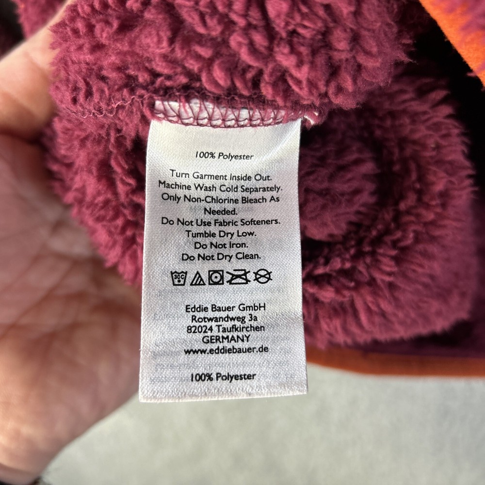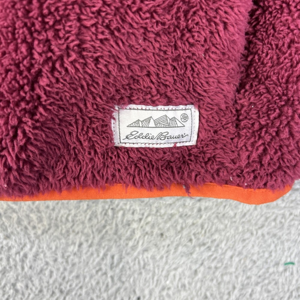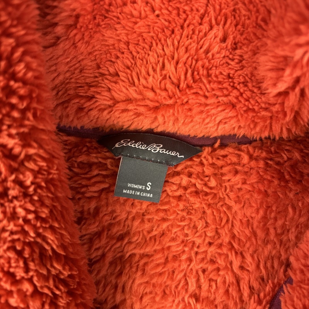 Eddie Bauer Fleece Womens Small Orange Maroon Sherpa Cozy Fuzzy Pile T Snap. Condition is Pre-owned. Shipped with USPS Ground Advantage.
