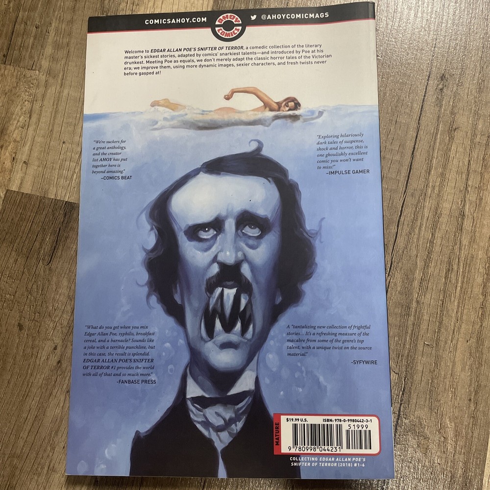 Immerse yourself in the world of horror and sci-fi with Edgar Allan Poe's Snifter Of Terror Volume 1 #1. This comic book, published by Ahoy Comics in 2018, features the iconic works of Hunt Emerson and Richard Williams. The softcover format and colored illustrations make this a must-have for any comic book collector. This single unit comic book is perfect for general audiences and fans of US Comics. The story title, Edgar Allan Poe's Snifter Of Terror, is a classic that will transport you to the modern age era (1992-now). Don't miss out on this opportunity to add this illustrated masterpiece to your collection.