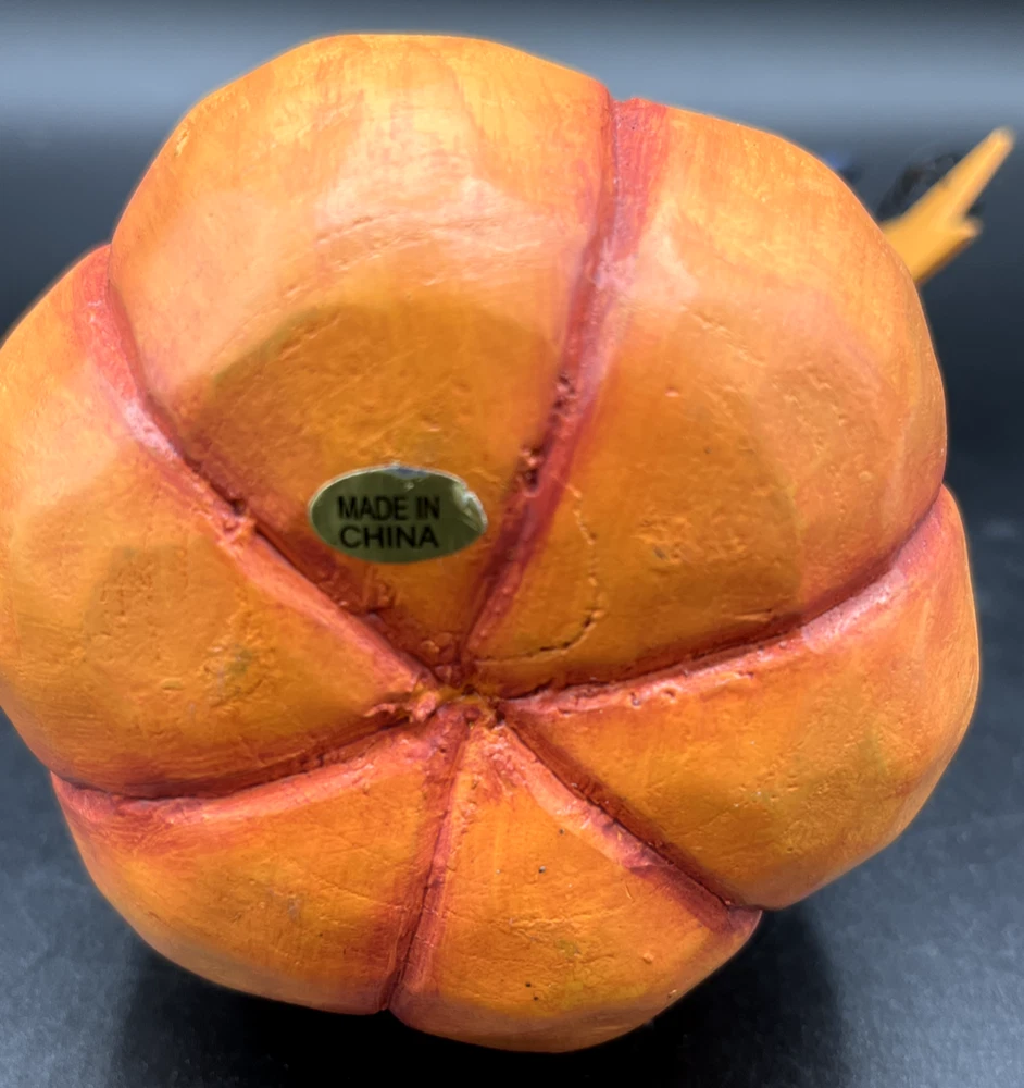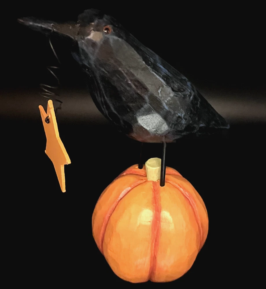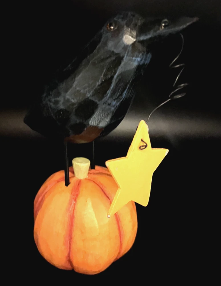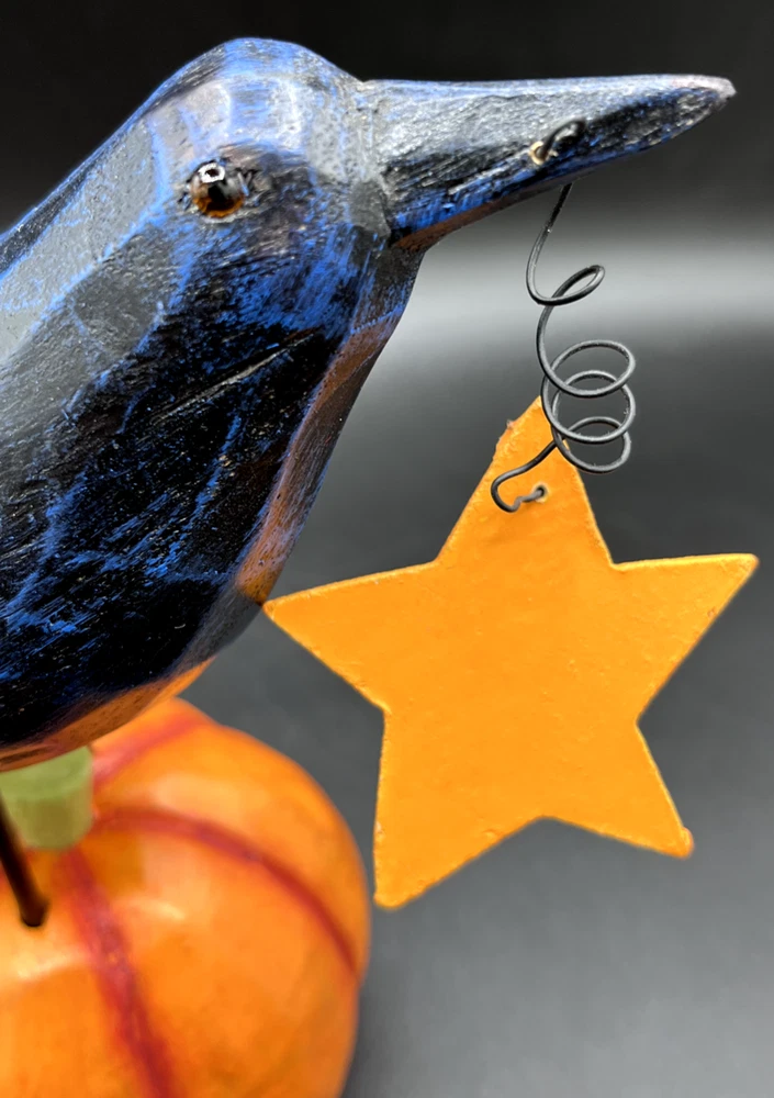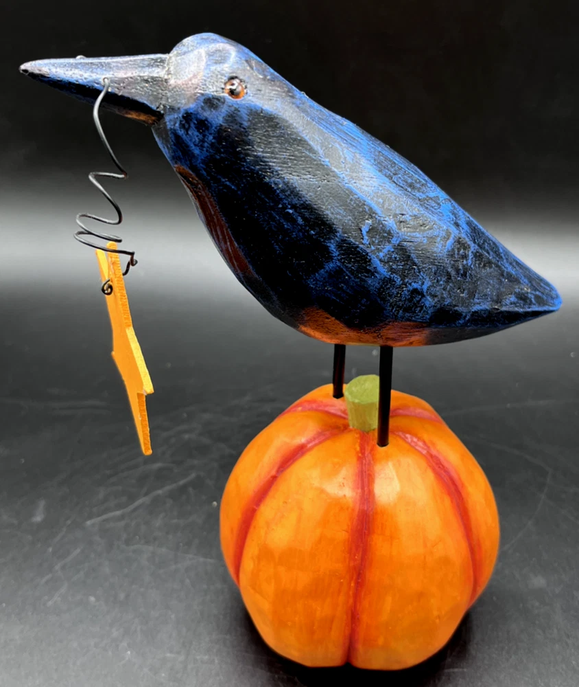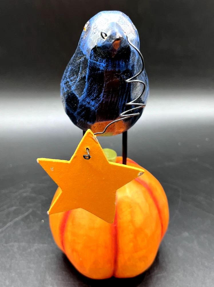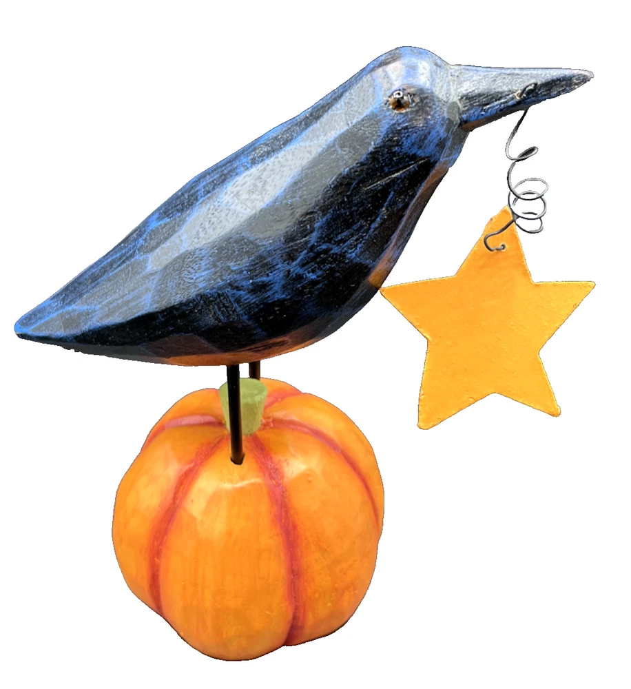 Edgar Allen Crow Holding Star Standing on Pumpkin Figurine Halloween Autumn This stunning Edgar Allen Crow Holding Star Standing on Pumpkin Figurine is the perfect addition to your Halloween, Autumn, Fall, or Thanksgiving décor. The crow figurine is made of high-quality resin material and features beautiful hand-painted details in orange, green, black, and blue colors. The figurine stands 9 inches tall and 6 inches wide, making it an excellent size for displaying on a mantel, shelf, or table. This licensed reproduction collectible is a must-have for any art or seasonal décor enthusiast. Add it to your collection today! Returns Accepted: 30-Day Return Policy at buyers exspense Shipped in 1-2 Business Days International Shipping: Buyer is responsible for any taxes and additional fees Free Combined Shipping: Please add additional items to your cart for automatic combined shipping, or you can contact us before you purchase. Vintage items may have a patina or signs of previous ownership. Please refer to the pictures, as they are part of the description. We try our hardest to show every aspect of each item so you can make an informed decision and be completely happy with your purchase! OFFERS ARE ALWAYS WELCOME! Thank you for shopping with us!