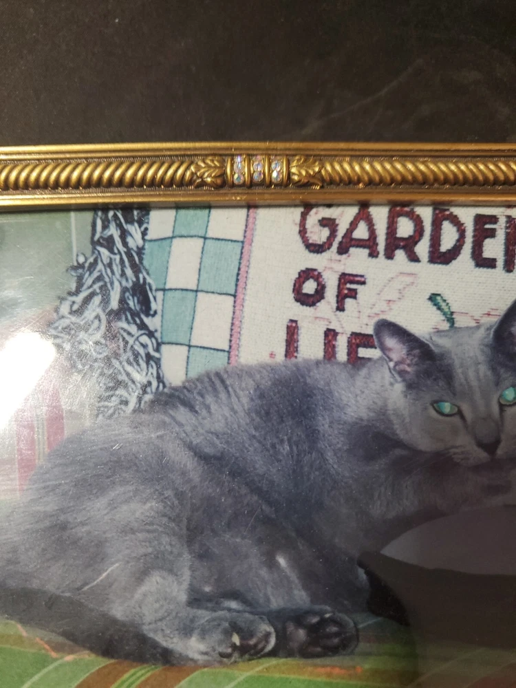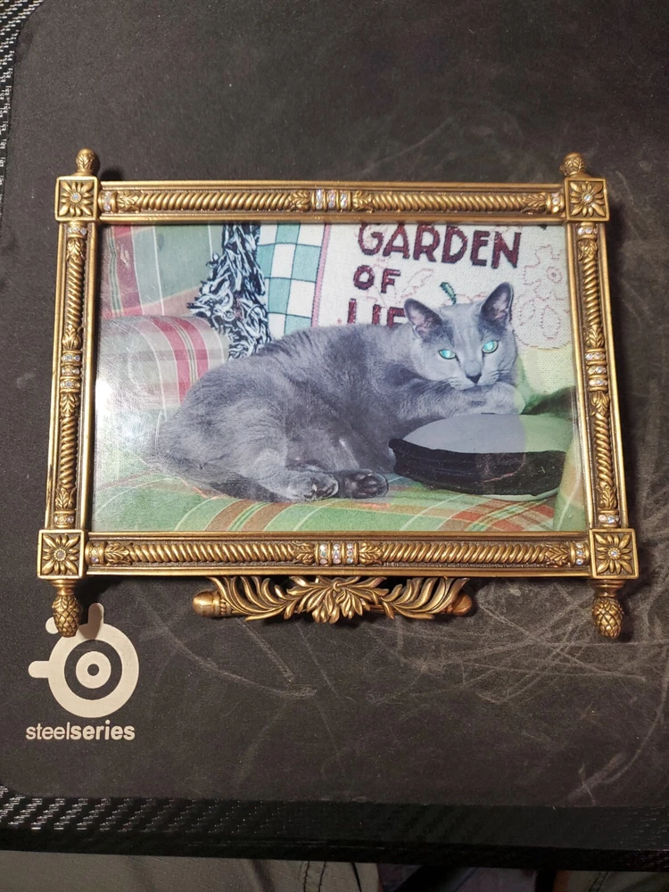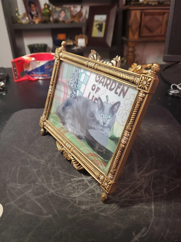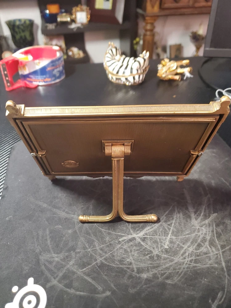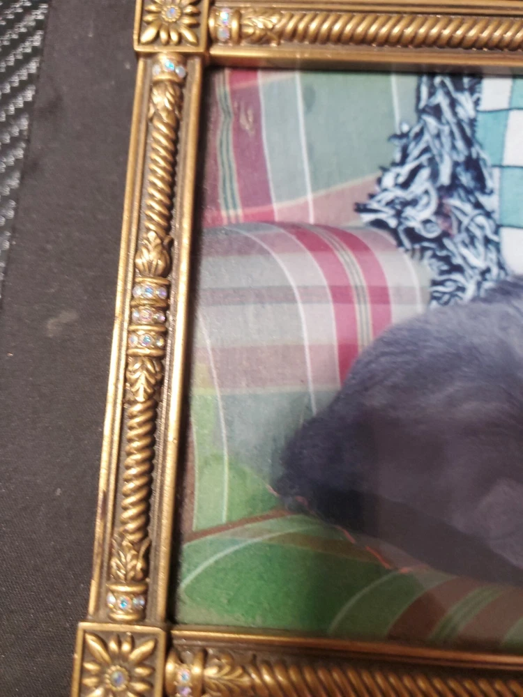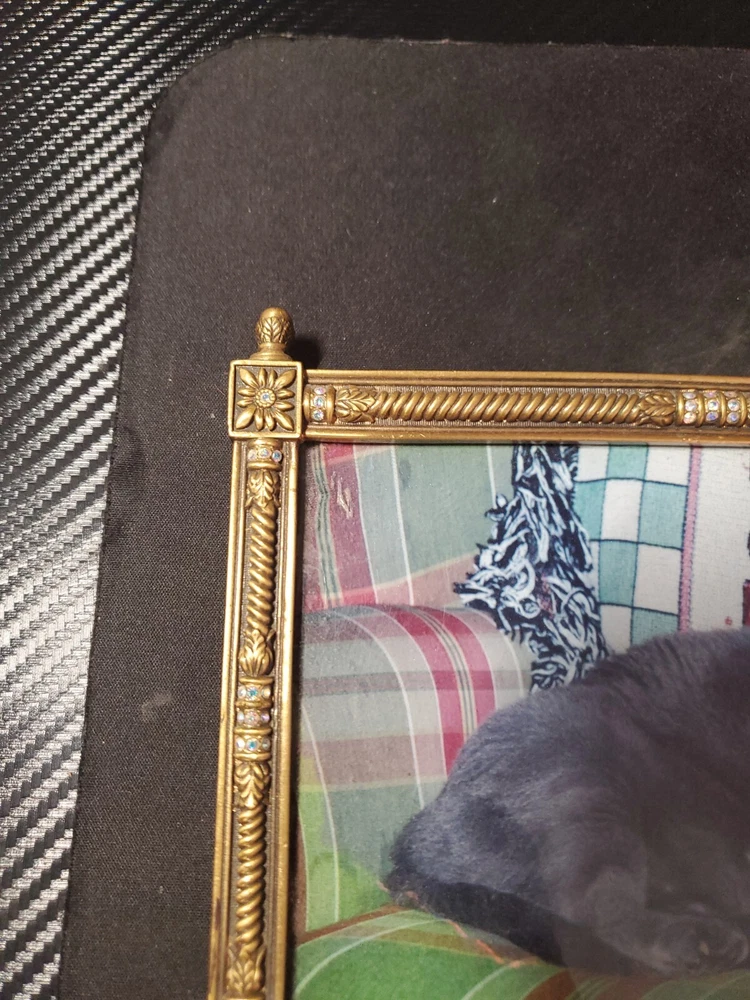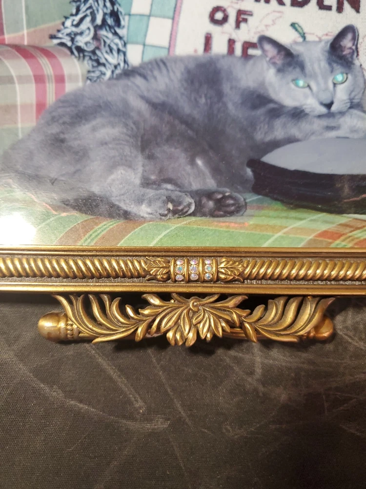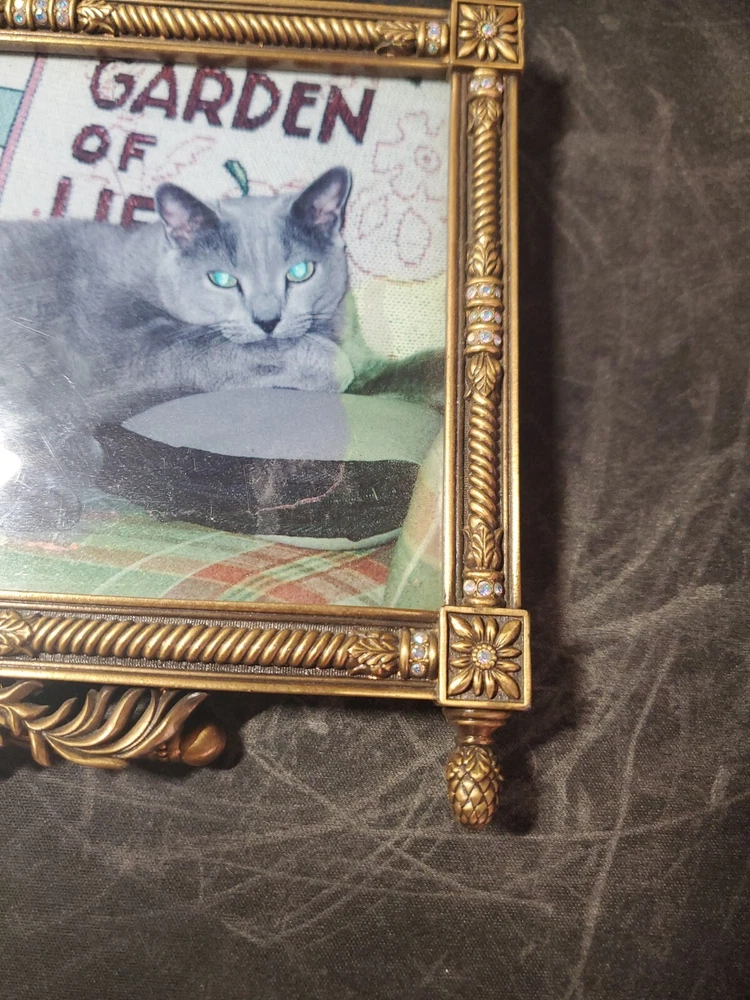 Bransh ; light blue CRYSTALS, MUSEUM GOLD PLATE Item Code Pre-owned / Excellent Condition Size 7" x 4.75" Color Crystals Clear Metal Finish Museum Gold Plate Category Frames...