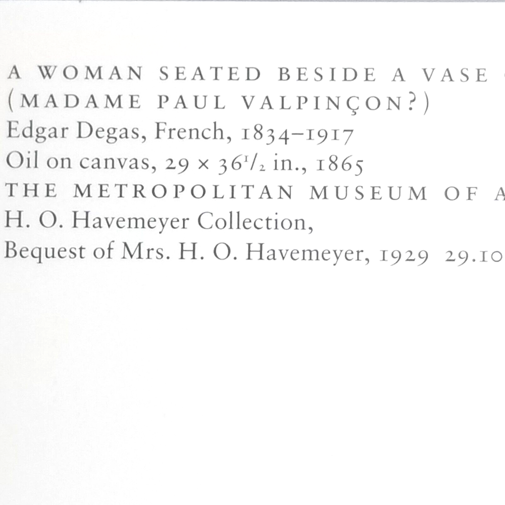 Edgar Degas A Woman Seated Beside A Vase Of Flowers 1865 French Oil Impressionism Painting Postcard. One (1) new, unposted card, glossy paper. Size: 4 1/4 in High x 6 in Wide. Weighs: 0.1 ounce. Buying: We realize you are buying without the benefit of a physical viewing. As a result we strive to show the most representative photographs and provide description and condition copy as accurately as possible. A careful buyer, someone who will take the time to review each photograph, read the description and condition copy, and ask us pertinent questions, is our most valued customer. Shipping: Shipping quotes include all postage, packing, handling, and insurance. Returns Policy: United States returns are accepted per eBay's guidelines. Please contact us first to open a dialogue. Most concerns will likely be resolved more quickly and satisfactorily at this stage for all involved before any other action is taken. International Shipping: (1) Please wait until you receive our invoice before sending payment. (2) International buyers are responsible for all Tax, Duty & Custom fees. (3) Returns are not accepted on Internationally shipped packages. Thank you for shopping at ImagePlans , our ebay sales and auction store. Take a moment to see our many other items currently listed for sale. ImagePlans is located in Fairfield County, Connecticut where we search for well-designed, quality items at neighboring estates sales. We mostly carry vintage, antique, used, and pre-owned items that are sold as is, as found. We ask that you carefully review our product photos and description & condition copy. Everything you purchase will be professionally packaged in a sturdy, safe manner for secure shipping from our location to yours.