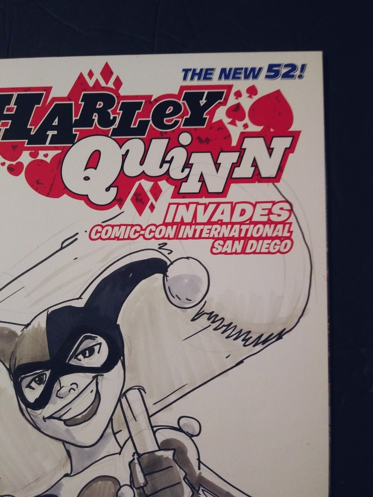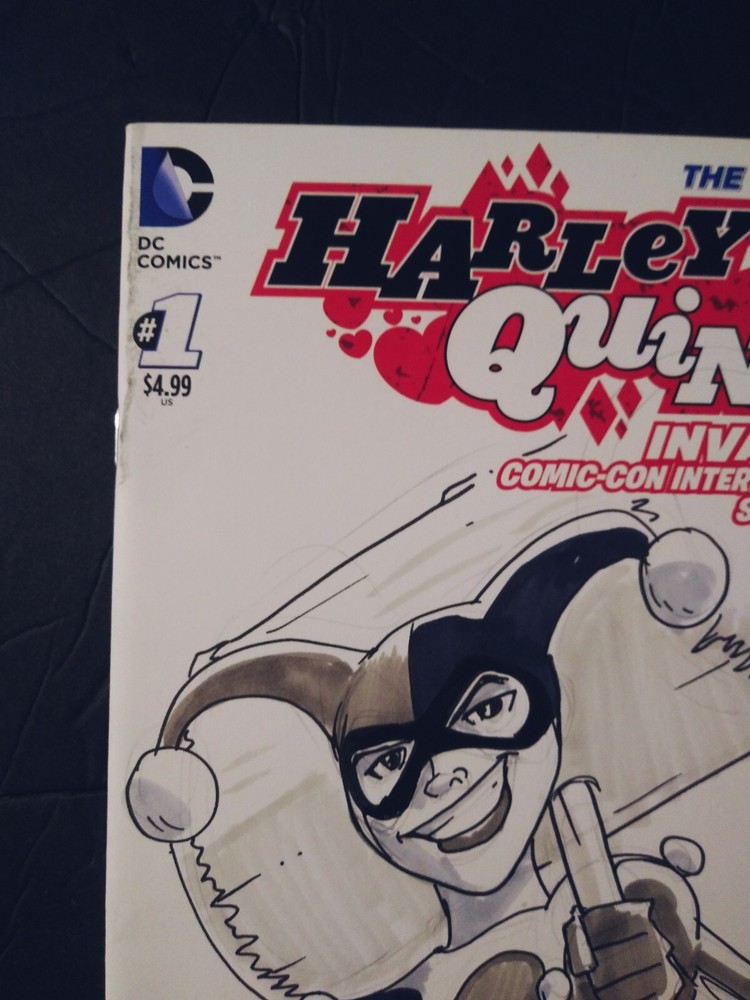 This comic book features a unique cover by a very talented artist Edgar Delgado, showcasing a custom art cover on a blank cover variant. It is signed by the artist and features the popular character Harley Quinn in her series titled "Harley Quinn Invades SDCC." The issue is a first printing and a 1st edition, with the main character being Harley Quinn. The comic book is a single issue in English, with a modern age style and colorful artwork. It is intended for a general audience and falls under the categories of Comics & Graphic Novels, Comics, Comic Books & Memorabilia, and Collectibles. The item is a great addition to any collection and perfect for fans of action, superheroes, bad girls, and action/adventure genres.