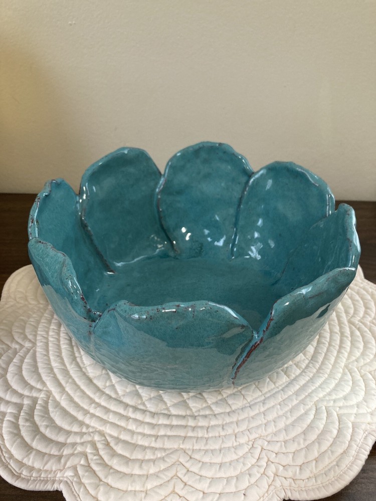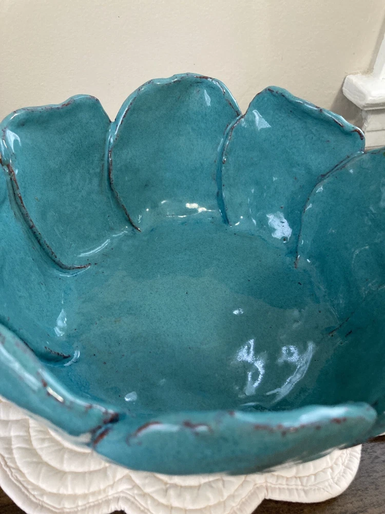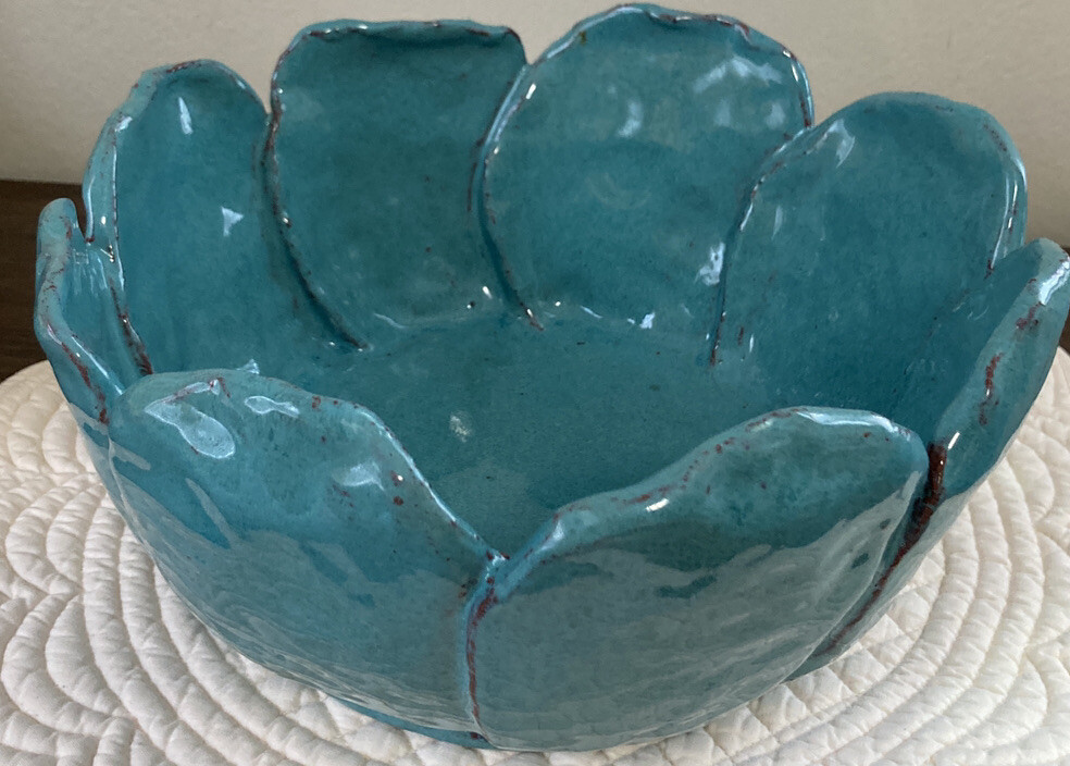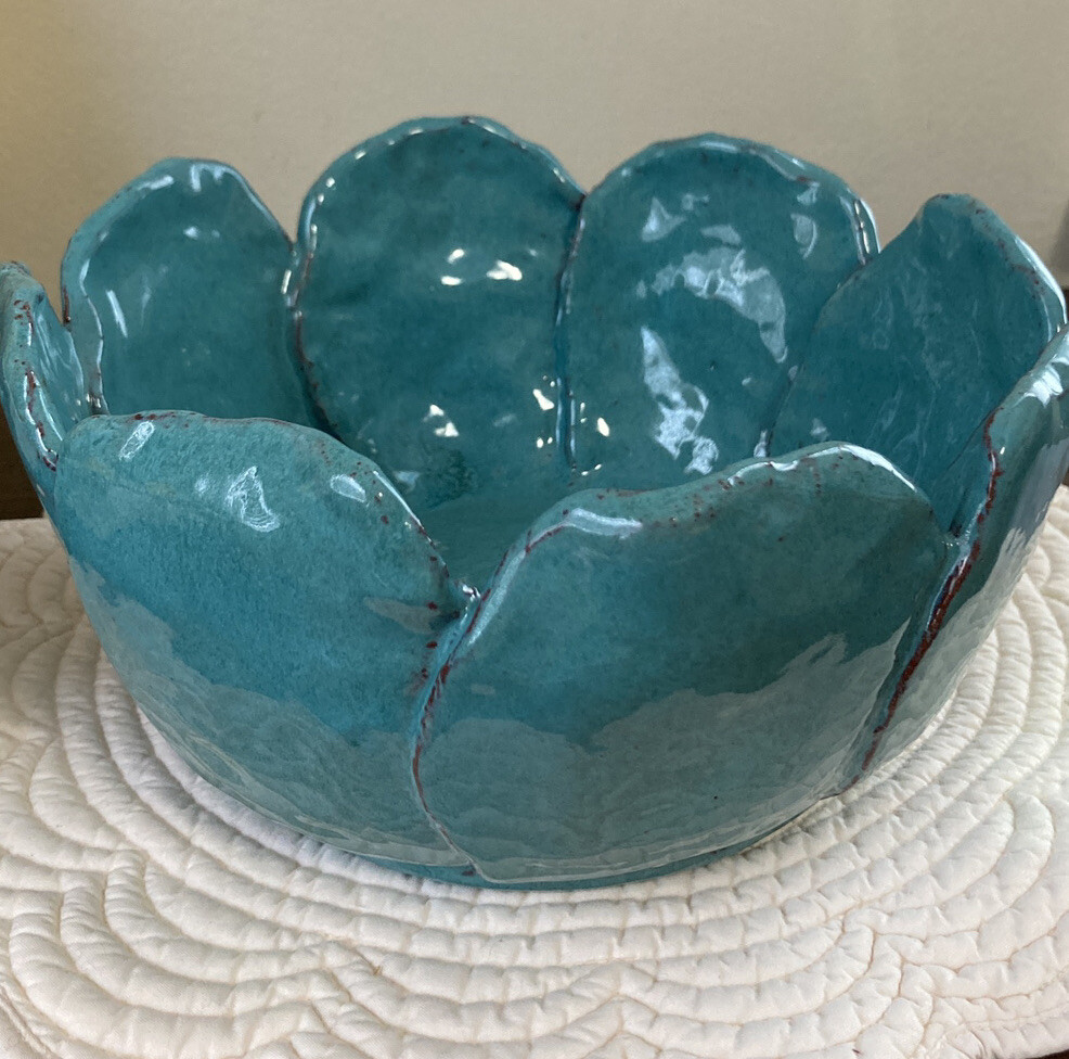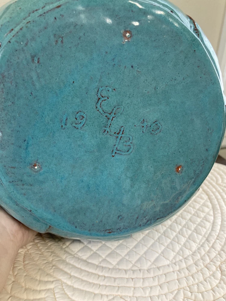 Early Edgar Littlefield bowl 1940 possible fruit serving bowl. Leaves or petal design. I have two small bowls in same color in separate listing. Edgar Littlefield BIOGRAPHY Edgar Littlefield is known for high-fired stoneware pottery surfaced with geometric patterns and animal imagery, as well as solid colors. Littlefield was a graduate student at Ohio State University in the 1920’s and began working as a professor there in 1929. Potter Arthur E. Baggs, was one of Littlefield’s professors at Ohio State University. When Littlefield joined the faculty Baggs became his mentor. Littlefield’s pottery has the distinction of winning two First Prizes in the Robineau Memorial Ceramic Exhibitions, Syracuse Museum of Fine Art (now the Everson Museum), Syracuse, New York.