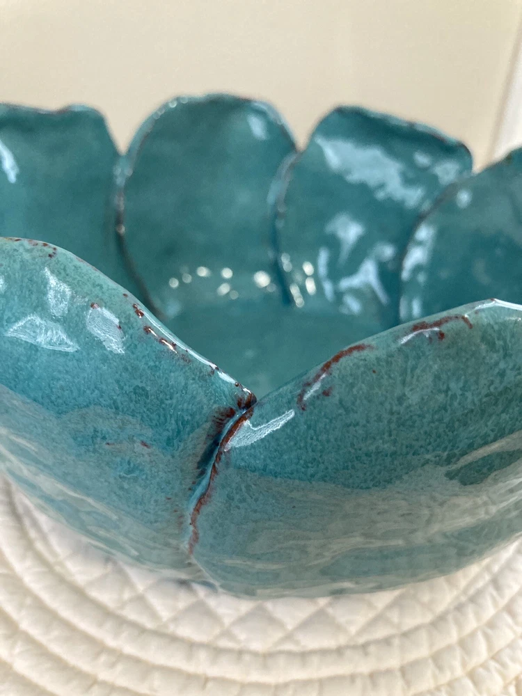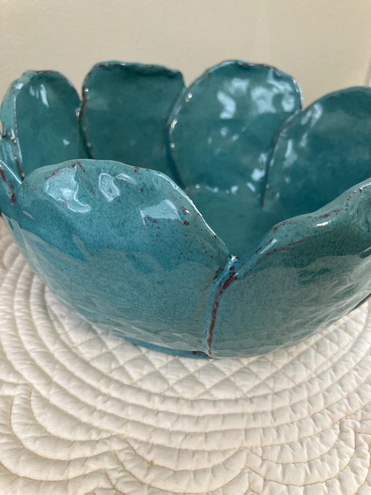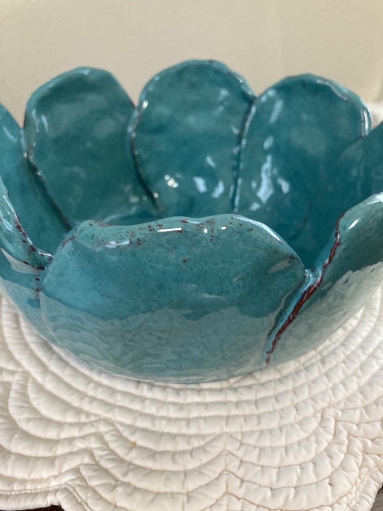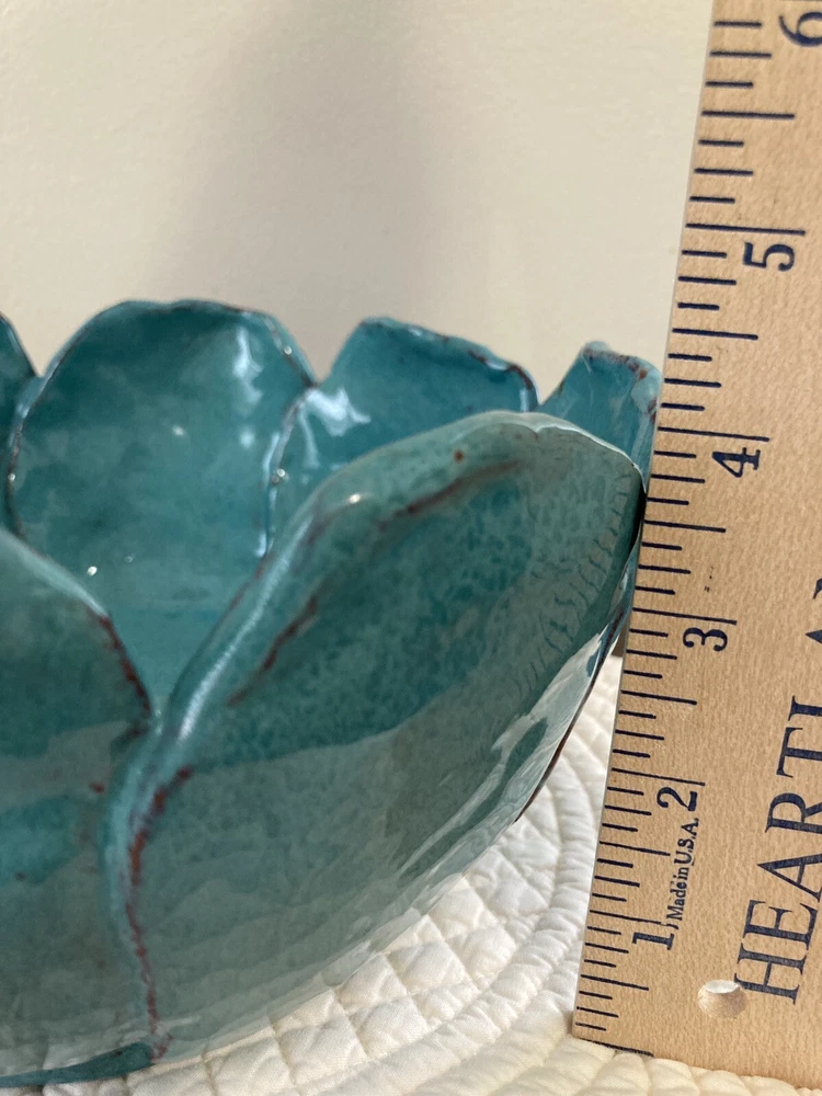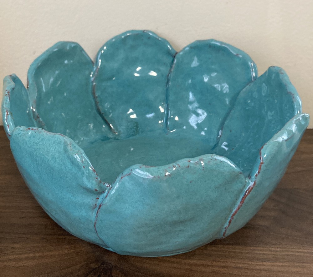 Early Edgar Littlefield bowl 1940 possible fruit serving bowl. Leaves or petal design. I have two small bowls in same color in separate listing. Edgar Littlefield BIOGRAPHY Edgar Littlefield is known for high-fired stoneware pottery surfaced with geometric patterns and animal imagery, as well as solid colors. Littlefield was a graduate student at Ohio State University in the 1920’s and began working as a professor there in 1929. Potter Arthur E. Baggs, was one of Littlefield’s professors at Ohio State University. When Littlefield joined the faculty Baggs became his mentor. Littlefield’s pottery has the distinction of winning two First Prizes in the Robineau Memorial Ceramic Exhibitions, Syracuse Museum of Fine Art (now the Everson Museum), Syracuse, New York.