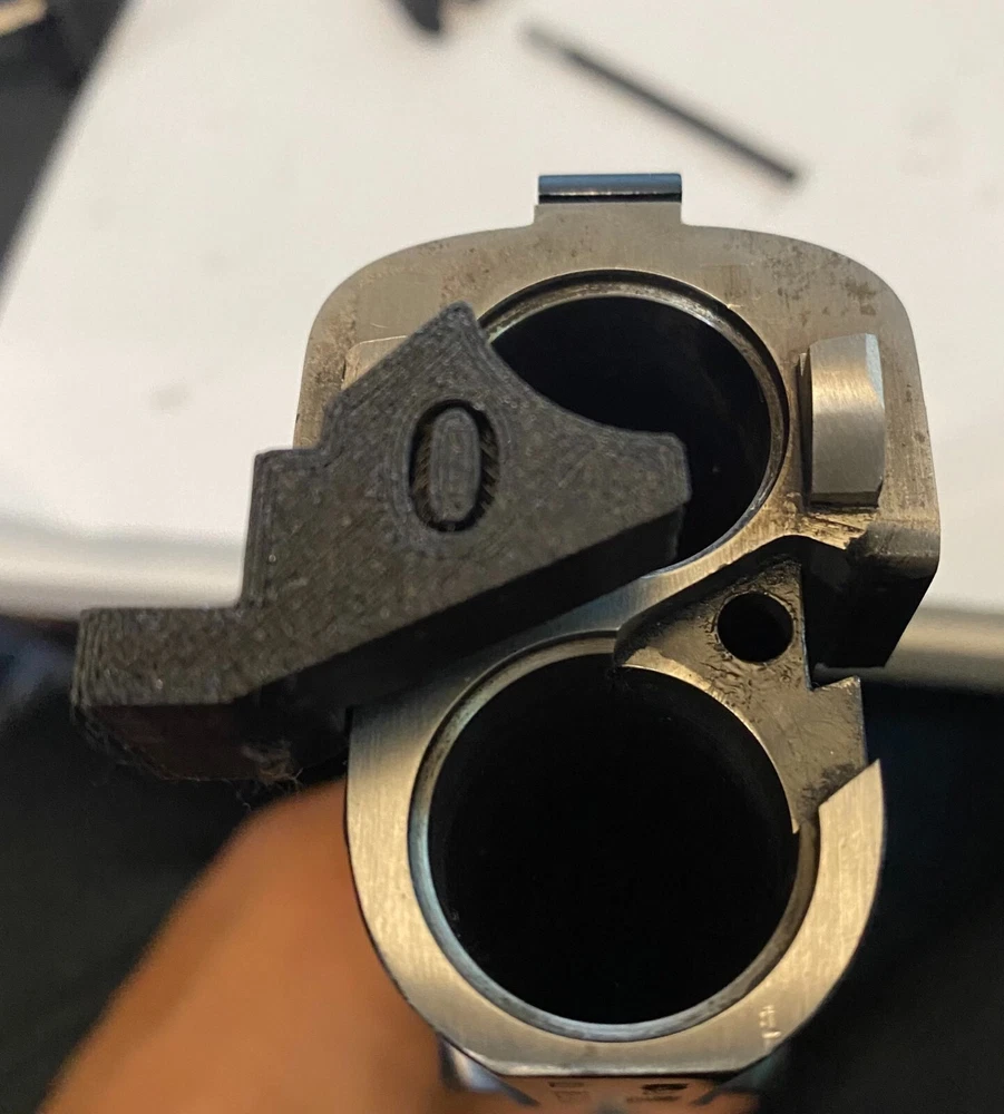 Ejector Removal Tool for Beretta Over/Under 68x, 69x, DT-10, DT-11 12ga Parts are labelled O and U. O is for the Over barrel and U is for the Under barrel. The tool is press fit on the ejector and assist in depressing the ejector. To remove the ejectors, the Under barrel ejector must be removed first before removing the Over barrel ejector. It is the reverse order to reinstall the ejectors. Be careful when removing the ejectors as the ejector plunger and spring may pop out unexpectedly. Don't see what you are looking for? Visit us at LPGWorks.com to see the latest products and announcements. Parts are 3D printed using PLA+ 68x,DT-10,DT-11 Series Guns Ejector needs to be depressed and rotated away from the locking block. Click here for demonstration video.