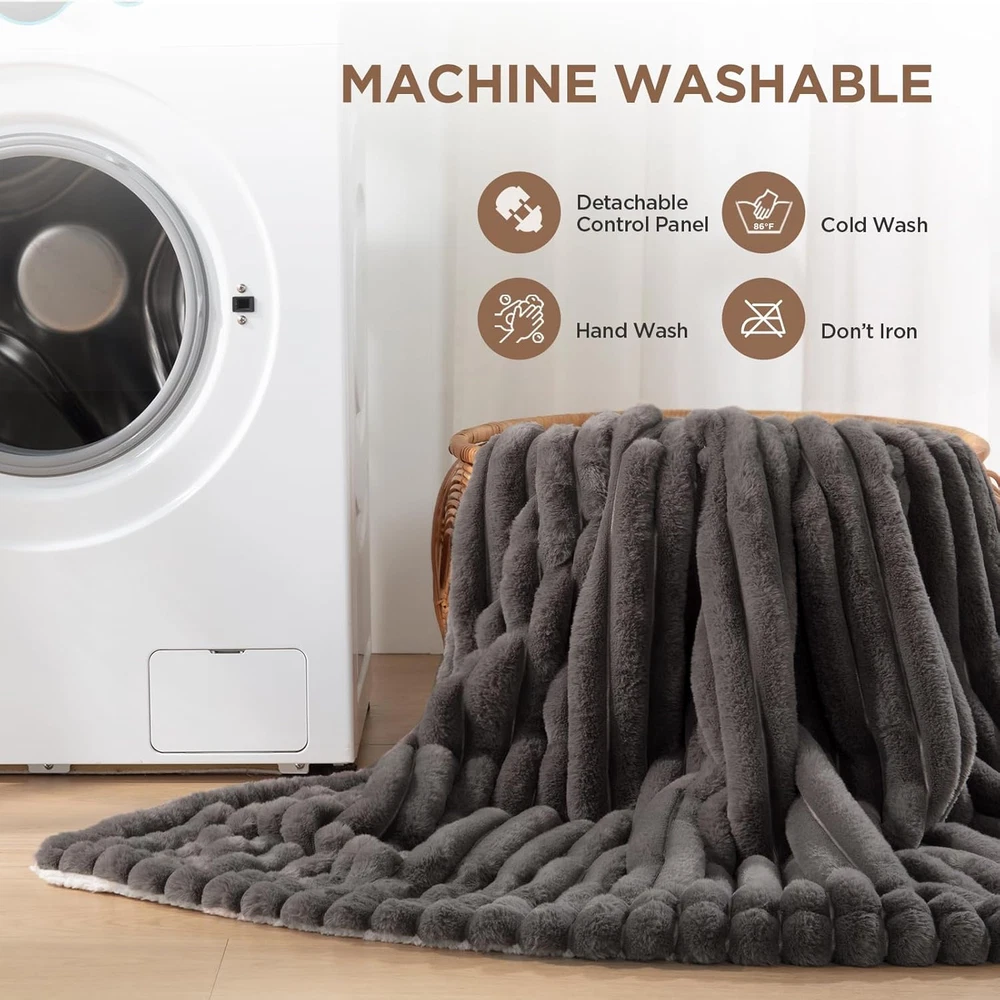 Store New Arrivals Add to Favorite View Feedback Contact Electric Blanket Full Size, Super Cozy Luxury Faux Fur & Sherpa Heated Blanket with 10 Heating Levels & 1-12 Hours Auto Off, Fast Heating Blanket, Machine Washable, 80X 84 Inch Charcoal Description Item model number 1 Style Home Number of Items 1 Pattern Solid Country of Origin China Blanket Form Throw Blanket Theme Warm Unit Count 1.0 Count Product Dimensions 17.32"L x 14.17"W Material Luxurious Faux Fur to Sherpa Model Name 1 Seasons Winter, Fall Age Range (Description) Adult Item Weight 8.83 pounds Special Feature Breathable Fabric Warmth Description Heavyweight Color Charcoal Recommended Uses For Product Home Sport 1 Fabric Type Faux Fur Product Care Instructions Machine Wash Size Full Size 80"x84" 【LUXURIOUS MATERIALS KEEP YOU WARM】 Westinghouse electric heating blanket is made of 350GSM luxury faux fur to 180GSM white sherpa, we pay great attention to product workmanship and quality, which is super soft, comfortable, skin-friendly and breathable, healthy, and can be directly in contact with the skin. The inner heating line is evenly distributed to avoid local overheating, allowing you to use it with peace of mind 【ETL & FCC CERTIFIED】 Westinghouse heated blanket has overheat protection that can be ensured your safety during normal use. ETL and FCC certified full size heating blanket with low electromagnetic radiation. Please read the instructions carefully before use to avoid local overheating caused by improper use 【INTELLIGENT SINGLE CONTROLLER & OVERHEATING PROTECTION】 Our heated blanket supports 20-minute warm-up, help to quickly start the heating process, so you don't have to wait too long to lie under a warm quilt. 12-hour automatic shutdown, overheating protection and other functions, let you use it more confidently. 10 heating settings, the temperature can be adjusted freely. The length of the power cord is 72 + 156 inches 【APPLICATION & SCENES】 Westinghouse electric blanket full size is suitable for use, watching television, reading books, relaxing at home on couch or sofa, during work on office, bring you a warm and comfortable life experience 【BEST GIFT SELECTION】 If you have family and friends who are afraid of the cold, this is the best winter gift you can give him. The full electric blanket is the best gift option as a bed warmer and the best safe choice 【EASY TO CARE & MACHINE WASH】Our full size heated blanket supports machine washing, you need to unplug the power cord from the controller before cleaning, and put it in the washing machine at 30°C water temperature. NOTE: DO NOT DRY CLEAN. DO NOT BLEACH. DO NOT IRON. DO NOT PLUG IN AND TURN ON THE HEATING PRODUCT WHEN WET. DO NOT USE UNTIL COMPLETELY DRY 【WARRANTY】 Westinghouse electric blankets come with a warranty, so if you have any questions or concerns about your product, please contact our customer service for assistance. Product Description ABOUT US We offer the best prices around on high quality products. Our E-store includes media such as books, movies, music and games while offering electronics, toys, sporting apparel, clothing, tools, general home, garden items and more. SHIPPING We are always working hard to ensure your package arrives as soon as possible. Please understand that some factors like weather, high postal traffic, and the performance of shipping companies are outside of our control. We offer free shipping to the lower 48 states and ship within 2 business days of payment, usually sooner. We do not accept P.O. Boxes. Please provide a physical address. For shipping outside of the continental USA, we only use eBay's Global Shipping Program.The item is shipped to KY and then sent to the rest of the world. International customers are responsible for all duties and taxes. Continue to check out in order to calculate costs for shipping the item to your country. Messages regarding eBay's Global Shipping Program MUST be directed at eBay EXCLUSIVELY. RETURNS We offer a 30-Day Return Policy on items which you are not completely satisfied with. You have the option for a full-refund or an exchange of the item. No returns are available on items shipped outside of the USA. PAYMENT We accept PayPal. CONTACT US This page content is yet to come Please ad us to your favorite seller and visit again later Thank You CUSTOMER SATISFACTION We try our very best to make sure every customer is completely satisfied. If there's a problem, message us! We're happy to help.