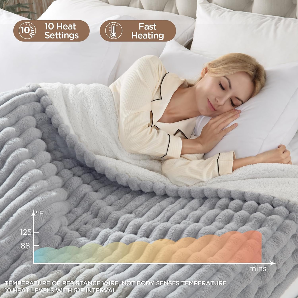 This electric blanket is incredibly cozy and keeps me perfectly warm all night! The soft faux fur and sherpa lining feel luxurious against my skin, and the heat distributes evenly without any hot spots. I love the peace of mind from the overheat protection and safety certifications—so comfortable and worry-free. Perfect for chilly nights!