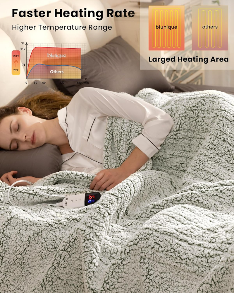 Store New Arrivals Add to Favorite View Feedback Contact Electric Blanket Heated Queen Soft Double Sherpa Super Cozy with 6 Fast Heating Levels & 1-10 Hours Auto-Off, Over-Heat Protection, Machine Washable-Sage Green Product Information Item model number BSCA010124QUPSG Style Modern Weave Type Sherpa Number of Items 1 Pattern Floral Country of Origin China Blanket Form Comforter Theme Fantasy Product Dimensions 90"L x 84"W Material Polyester Model Name Sherpa Heated Blanket Seasons Winter, Fall Age Range (Description) Adult Water Resistance Level Not Water Resistant Fabric Type 100% Polyester Item Weight 8 pounds Special Feature Reversible, Lightweight, Thermal Fabric Warmth Description Lightweight Color Sage Green Recommended Uses For Product Travel, Bedding, Camping Sport Bedding Product Care Instructions Machine Wash Size Queen ABOUT US We are proud to be based in the United States, with all of our products shipping directly from within the country. Our selection includes home décor, furniture, sports equipment, tools, pet products, and more. If you have any questions about our products, we’re always happy to help. SHIPPING We are always working hard to ensure your package arrives as soon as possible. Please understand that some factors like weather, high postal traffic, and the performance of shipping companies are outside of our control. We offer free shipping to the lower 48 states and ship within 2 business days of payment, usually sooner. For shipping outside of the continental USA, we only use eBay's Global Shipping Program. The item is shipped to IL and then sent to the rest of the world. RETURNS We offer Free Returns for 30-Days on items which you are not completely satisfied with. You have the option for a full-refund or an exchange of the item. CUSTOMER SATISFACTION We try our very best to make sure every customer is completely satisfied. If there's a problem, message us! We're happy to help.