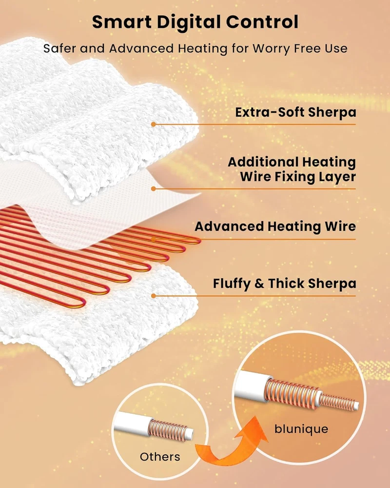 Store New Arrivals Add to Favorite View Feedback Contact Electric Blanket Heated Queen Soft Double Sherpa Super Cozy with 6 Fast Heating Levels & 1-10 Hours Auto-Off, Over-Heat Protection, Machine Washable-White Description Item model number BSCA010124QUPDG Style Modern Weave Type Sherpa Number of Items 1 Pattern Floral Country of Origin China Blanket Form Comforter Theme Fantasy Product Dimensions 90"L x 84"W Material Polyester Model Name Sherpa Heated Blanket Seasons Winter, Fall Age Range (Description) Adult Water Resistance Level Not Water Resistant Fabric Type 100% Polyester Item Weight 8.03 pounds Special Feature Reversible, Lightweight, Thermal Fabric Warmth Description Lightweight Color White Recommended Uses For Product Travel, Bedding, Camping Sport Bedding Product Care Instructions Machine Wash Size Queen SAFETY FIRST: ETL certified with default settings, the electric heated blanket offers 6 temperature levels (75°F-110°F) and auto-off times (1h-4h).Queen/king 1h~10h. Using advanced Ultrasonic Heat Sealing and Overlock for insulation and flame resistance, it ensures no safety hazards. Enjoy worry-free relaxation with automatic shutdown for energy conservation. Embrace safety and warmth with confidence. PREMIUM MATERIAL: Crafted with 400gsm duoble side sherpa this blanket is not only warm and soft but also exceptionally durable. The heating wire is so thin that you'll hardly notice its presence during use.Thickened electric blanket effectively maintains heat to reduce unnecessary losses and save energy DIGITAL DISPLAY&OVERHEAT PROTECTION : Our electric blanket features a digital display, allowing you to freely choose temperature and control time according to your preferences.Overheating protection ensures worry free use. FLEXIBILITY & MULTI-FUNCTION: The Throw Size comes with 9.18ft power cord. The Twin, Queen and King Size come with an 13.12ft power cord. The long power cords give you more room to move around. They can be used on a bed, sofa, study room and office, so you can stay active and unrestrained. No need to worry about being trapped around the socket!Giving a feeling of warmth and security, it is an ideal gift of protection and warmth to the body. QUALITY GUARANTEE:ETL certified for quality. If you have any questions or concerns about the blanket, please reach out to our customer service. We provide a 7x24-hour online customer service who can reply to your questions at any time. Product Description ABOUT US We offer the best prices around on high quality products. Our E-store includes media such as books, movies, music and games while offering electronics, toys, sporting apparel, clothing, tools, general home, garden items and more. SHIPPING We are always working hard to ensure your package arrives as soon as possible. Please understand that some factors like weather, high postal traffic, and the performance of shipping companies are outside of our control. We offer free shipping to the lower 48 states and ship within 2 business days of payment, usually sooner. We do not accept P.O. Boxes. Please provide a physical address. For shipping outside of the continental USA, we only use eBay's Global Shipping Program.The item is shipped to KY and then sent to the rest of the world. International customers are responsible for all duties and taxes. Continue to check out in order to calculate costs for shipping the item to your country. Messages regarding eBay's Global Shipping Program MUST be directed at eBay EXCLUSIVELY. RETURNS We offer a 30-Day Return Policy on items which you are not completely satisfied with. You have the option for a full-refund or an exchange of the item. No returns are available on items shipped outside of the USA. PAYMENT We accept PayPal. CONTACT US This page content is yet to come Please ad us to your favorite seller and visit again later Thank You CUSTOMER SATISFACTION We try our very best to make sure every customer is completely satisfied. If there's a problem, message us! We're happy to help.