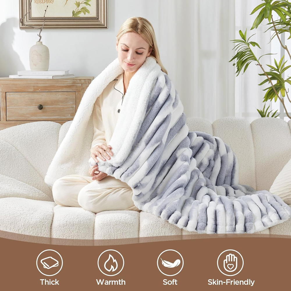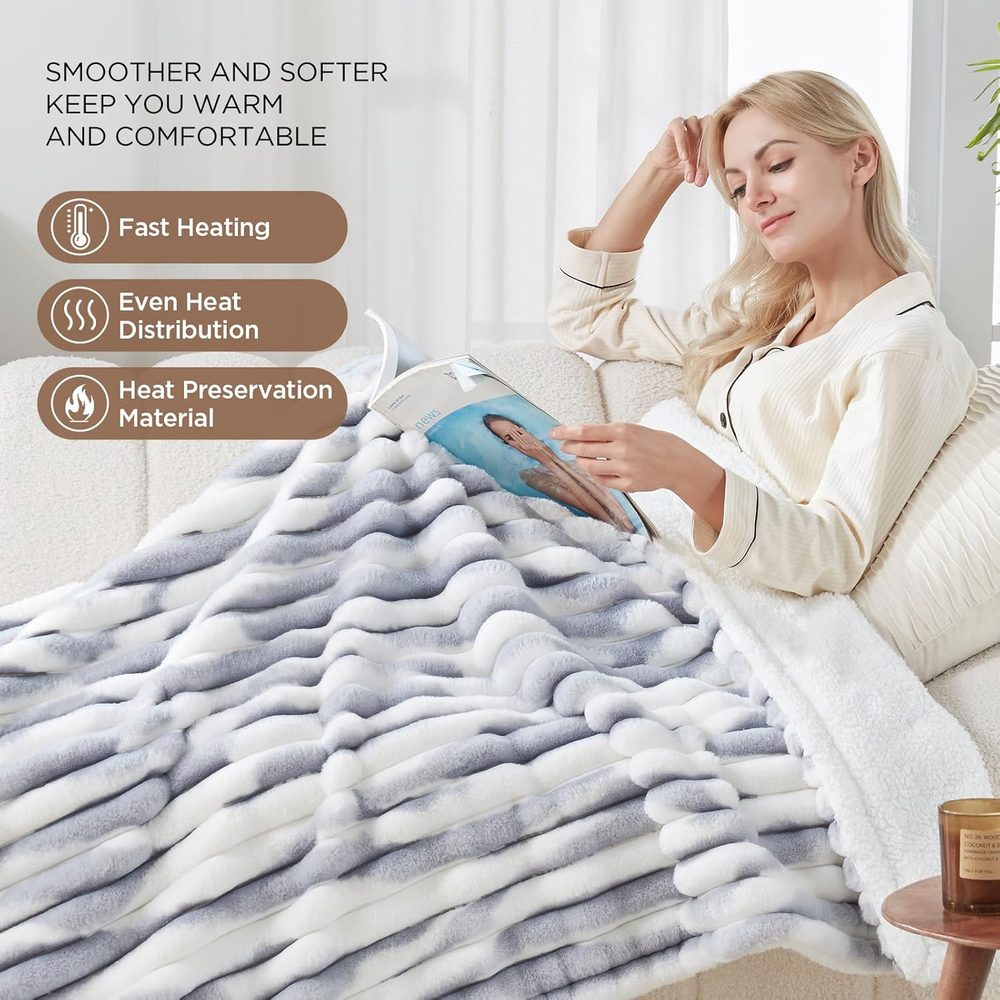 Store New Arrivals Add to Favorite View Feedback Contact Electric Blanket Heated Throw, Super Cozy Luxury Faux Fur & Sherpa with 6 Heating Levels & 2-10 Hours Auto Off, Fast Heating & Overheat Protection, 50X60 Inch, Blue Gray Product Information Item model number 1 Style Home Number of Items 1 Pattern Solid Country of Origin China Blanket Form Throw Blanket Theme Warm Unit Count 1 Count Product Dimensions 8.84"L x 12.6"W Material Luxurious Faux Fur to Sherpa Model Name 1 Seasons Winter, Fall Age Range (Description) Adult Item Weight 5.28 pounds Special Feature Breathable Fabric Warmth Description Heavyweight Color Blue Gray Recommended Uses For Product Home Sport 1 Fabric Type Faux Fur Size Throw Size 50"x60" ABOUT US We are proud to be based in the United States, with all of our products shipping directly from within the country. Our selection includes home décor, furniture, sports equipment, tools, pet products, and more. If you have any questions about our products, we’re always happy to help. SHIPPING We are always working hard to ensure your package arrives as soon as possible. Please understand that some factors like weather, high postal traffic, and the performance of shipping companies are outside of our control. We offer free shipping to the lower 48 states and ship within 2 business days of payment, usually sooner. For shipping outside of the continental USA, we only use eBay's Global Shipping Program. The item is shipped to IL and then sent to the rest of the world. RETURNS We offer Free Returns for 30-Days on items which you are not completely satisfied with. You have the option for a full-refund or an exchange of the item. CUSTOMER SATISFACTION We try our very best to make sure every customer is completely satisfied. If there's a problem, message us! We're happy to help.