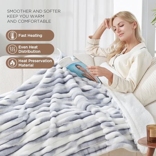 Return Policy Fast Delivery Trusted seller Electric Blanket Heated Throw, Super Cozy Luxury Faux Fur & Sherpa with 6 Heating Levels & 2-10 Hours Auto Off, Fast Heating & Overheat Protection, 50x60 Inch, Blue Gray Product Description 【LUXURIOUS MATERIALS KEEP YOU WARM】 heated throw blanket is made of 350GSM luxury faux fur to 180GSM white sherpa, we pay great attention to product workmanship and quality, which is super soft, comfortable, skin-friendly and breathable, healthy, and can be directly in contact with the skin. The inner heating line is evenly distributed to avoid local overheating, allowing you to use it with peace of mind 【ETL & FCC CERTIFIED】 electric blanket throw has overheat protection that can be ensured your safety during normal use. ETL and FCC certified heated blanket throw with low electromagnetic radiation. Please read the instructions carefully before use to avoid local overheating caused by improper use 【INTELLIGENT SINGLE CONTROL & OVERHEATING PROTECTION】 Our electric throw blanket supports 20-minute warm-up, help to quickly start the heating process, so you don't have to wait too long to lie under a warm quilt. 10-hour automatic shutdown, overheating protection and other functions, let you use it more confidently. 6 heating settings, the temperature can be adjusted freely. The length of the power cord is 72 + 32 inches 【APPLICATION & SCENES】 heated throw blanket electric is suitable for single use, watching television, reading books, relaxing at home on couch or sofa, during work on office, bring you a warm and comfortable life experience 【BEST GIFT SELECTION】 If you have family and friends who are afraid of the cold, this is the best winter gift you can give him. The heating throw blanket is the best gift option as a bed warmer and the best safe choice 【EASY TO CARE & MACHINE WASH】Our heating blanket throw supports machine washing, you need to unplug the power cord from the controller before cleaning, and put it in the washing machine at 30°C water temperature. NOTE: DO NOT DRY CLEAN. DO NOT BLEACH. DO NOT IRON. DO NOT PLUG IN AND TURN ON THE HEATING PRODUCT WHEN WET. DO NOT USE UNTIL COMPLETELY DRY 【WARRANTY】 electric blankets come with a warranty, so if you have any questions or concerns about your product, please contact our customer service for assistance. Shipping Returns Payment Shipping Shipping is FREE to all addresses other than APO/PO boxes in the lower 48 states. All our stock ships from US-based warehouses. Shipped via USPS or UPS (depending on location and package weight) Unless stated otherwise, all orders will ship within 24-72 hours of your payment being processed. Check our feedback to see the great reviews of FAST shipping we offer. Returns Seller does not accept returns Payment We currently accept payment via eBay managed payments only. Once payment is cleared, we will dispatch your shipment within 1-3 business days. Please refer to the "Shipping" tab for more information regarding shipping speed to your destination.