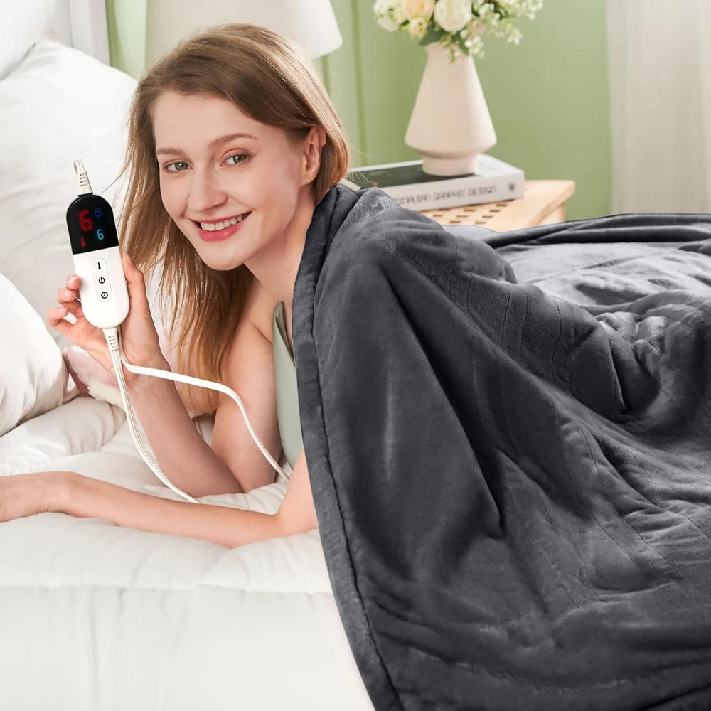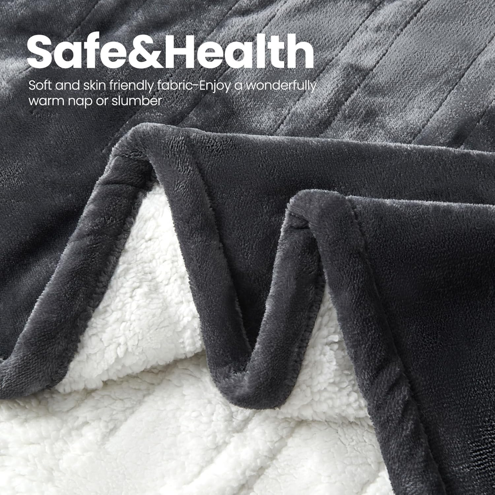 Experience the cozy warmth: Wrapped in the embrace of PTQ Electric Heated Blanket, you’ll instantly feel the comforting warmth. Crafted with premium Flannel & Sherpa materials, this heated blanket is an epitome of luxurious softness, promising to transform your winter moments into a haven of snug contentment. Personalized temperature control: PTQ Electric Heated Blanket provides 6 heating levels, allowing you to effortlessly adjust the warmth according to different weather conditions and personal preferences. From gentle warmth to toasty heat, you’re empowered to curate your perfect degree of comfort, adapting effortlessly to the ever-changing weather moods. Intelligent safety protection: With a 10-hour auto-off feature, you can enjoy the warmth worry-free, without concerns about accidentally leaving the heated blanket on. Indulge in a cozy night’s sleep knowing that your safety is taken care of. Stylish home accent: Beyond practicality, Unveil the depths of your affection with the PTQ Electric Heated Blanket—a gift that speaks volumes of care. Whether it’s for cherished family, treasured friends, or a beloved partner, this blanket wraps them in your warmth, forging precious moments that resonate in the heart. Exquisite gift choice: Whether for family, friends, or loved ones, PTQ Electric Heated Blanket is a thoughtful gift that conveys your care. Let your affection be accompanied by warmth, creating tender moments that resonate deeply. Product Description