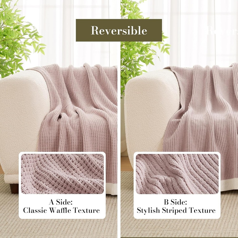 This chenille blanket is so soft and luxurious—perfect for snuggling up any time of year! The reversible design is stylish, and the waffle-knit side feels extra cozy. It’s lightweight yet warm, doesn’t shed, and washes well. Love the pretty pink color and elegant trim—it adds a chic touch to my couch or bed. Great quality for the price!